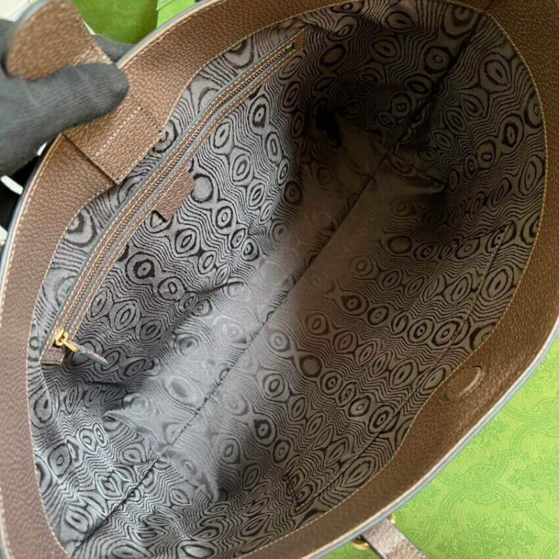 Hacker közepes táska bézs és barna bevonatú vászonban, érett arany hardverrel a Hacker projektből származik. Két fogantyú