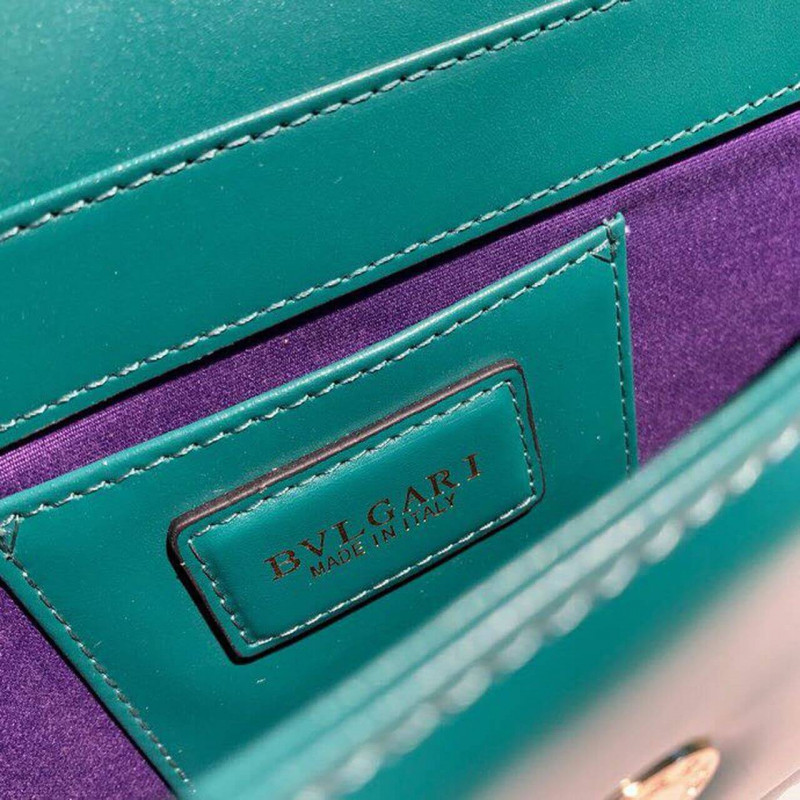 Serpenti Forever válltáska Carmine Jasper borjúbőrben. A kígyófej bezárása világos aranyozott sárgarézben, fekete és csillogó tejes opál zománcmal, valamint fekete onyx szemmel díszítve. A Carmine Jasperben színezett sima borjúbőrből készült, ez a modell sárgaréz fényű aranyozott hardverrel rendelkezik. Az ikonikus kígyófej bezárása hipnotizálódik fekete -fehér zománcmal és csábító szemmel a zöld malachitban. Egyetlen nyitott zseb, állítható kígyó test alakú lánc és bőr heveder, zsebtükör.
