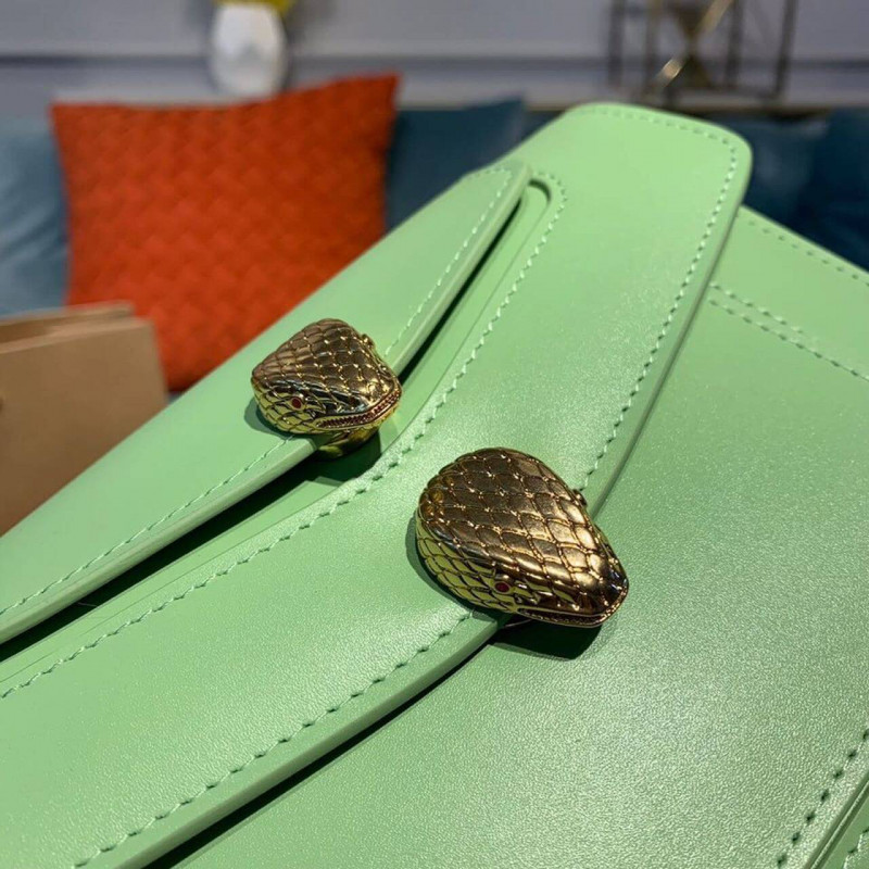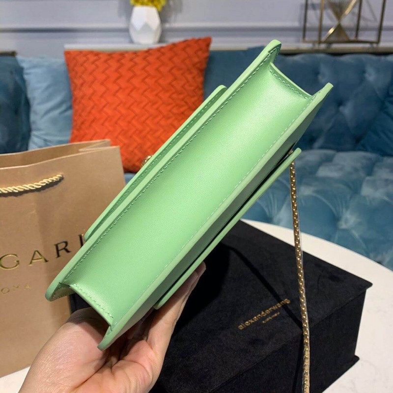 A Serpenti új fejezetéhez a sorozat szemein keresztül Alexander Wang újjáépíti az ikonikus Serpenti motívumot, hogy új, Edgy kapszulagyűjteményt hozzon létre. A sima menta borjúbőrből készített Duette Crossbody táska az inconic Serpenti Forever táskának új, éles újraértelmezését jelöli. Az 1960 -as évek Bvlgari Heritage órájából inspirálva, Alexander Wang ezt a modellt egy dupla új Serpenti fejjel bezárja antik aranyozott sárgarézben, csábító vörös zománc szemmel. Korlátozott kiadású belső hanggal a tónus borjú bőrcímke Alexander Wang Bvlgari logóval. Egy aranyozott ékszerlánc, amelyet a kígyó serpitálása ihlette, egyetlen guszset és három zsebe fejezi be ezt a modellt.