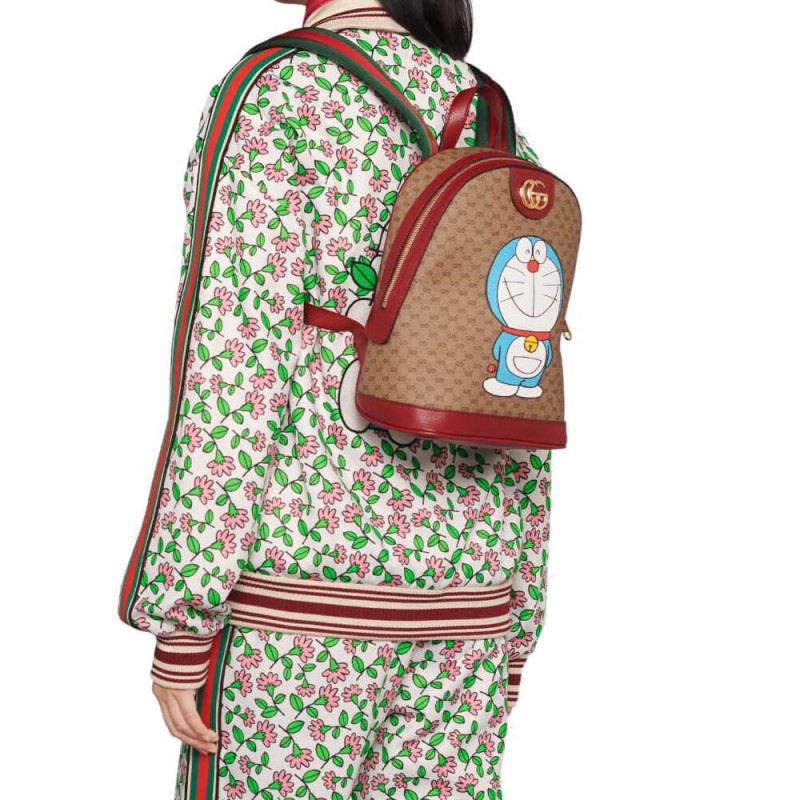 Ez a kis hátizsák része a Doraemon és a Gucci közötti különleges együttműködésnek. A 2112. szeptember 3-án született egy macska típusú robotot a 22. századból, hogy segítsen egy Nobita nevű fiatal fiút titkos eszközökkel négydimenziós tasakából. Játékos karakter, Doraemon utálja az egereket és szereti a Dorayaki-t, egy édes palacsintát. Pro nyomtatás