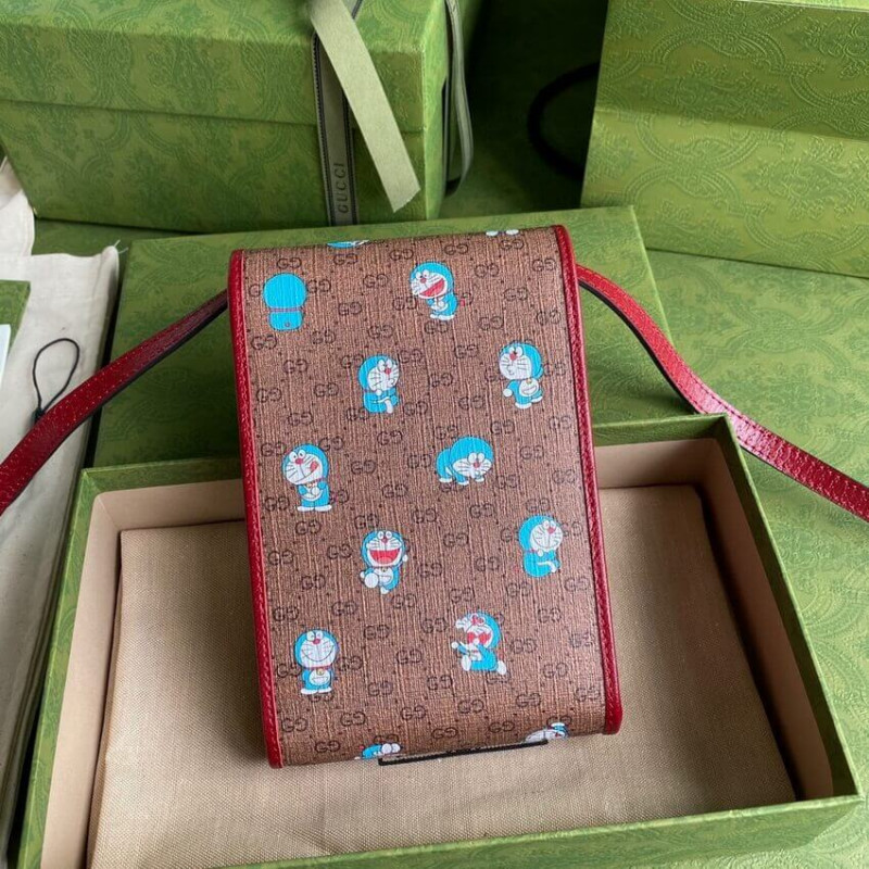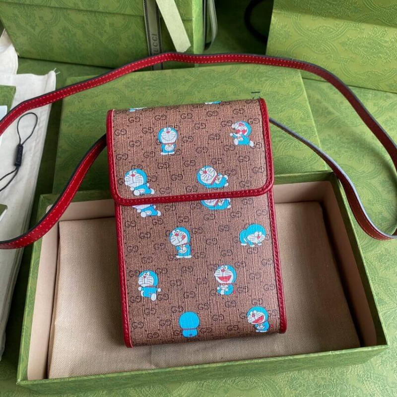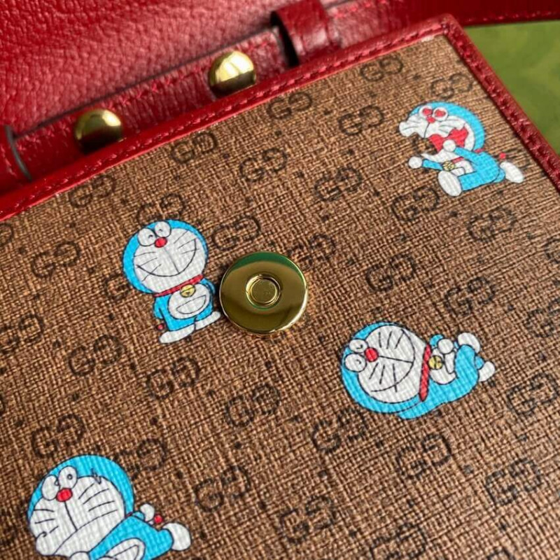 Ez a táska a Doraemon és a Gucci közötti különleges együttműködés része. A 2112. szeptember 3-án született egy macska típusú robotot a 22. századból, hogy segítsen egy Nobita nevű fiatal fiút titkos eszközökkel négydimenziós tasakából. Játékos karakter, Doraemon utálja az egereket és szereti a Dorayaki-t, egy édes palacsintát. Impact