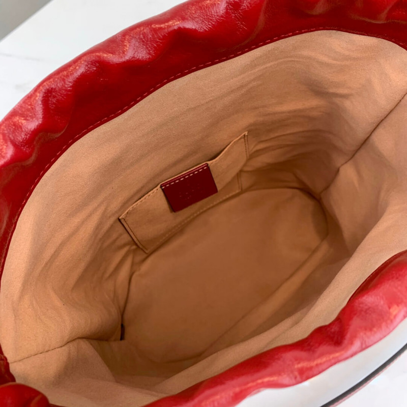 Az archívumok ihlette, a Gucci 1955 Horsebit Bucet táska egyesíti az eredeti részleteket, amelyeket először több mint hat évtizeddel ezelőtt mutattak be egy modern szellemmel, kiemelve a lóbitot. A Gucci genetikai kódjának részét képezi, a kettős gyűrűs és a sáv kialakítását a lovasvilágból kölcsönzött ház szimbólumok egyik legkülönbözőbb elemeként hozták létre. A hardver párosul az anyagok kortárs keverékével, a texturált és a puha fekete bőr kombinálásával, hogy egyedi tonális hatást hozzon létre. ] puha bőr teteje