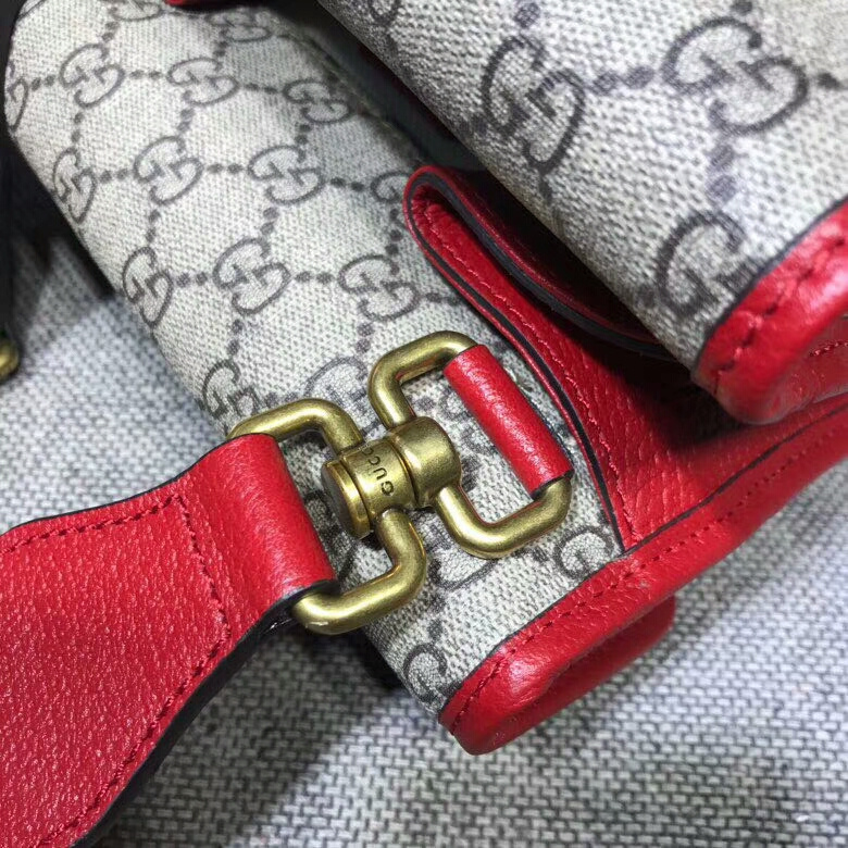 Bézs/zöld/piros GG Supreme vászon, alacsony környezeti hatású anyag, barna bőr díszítéssel