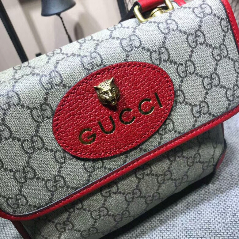 ovális Gucci bőrcímke fém macskafejjel >