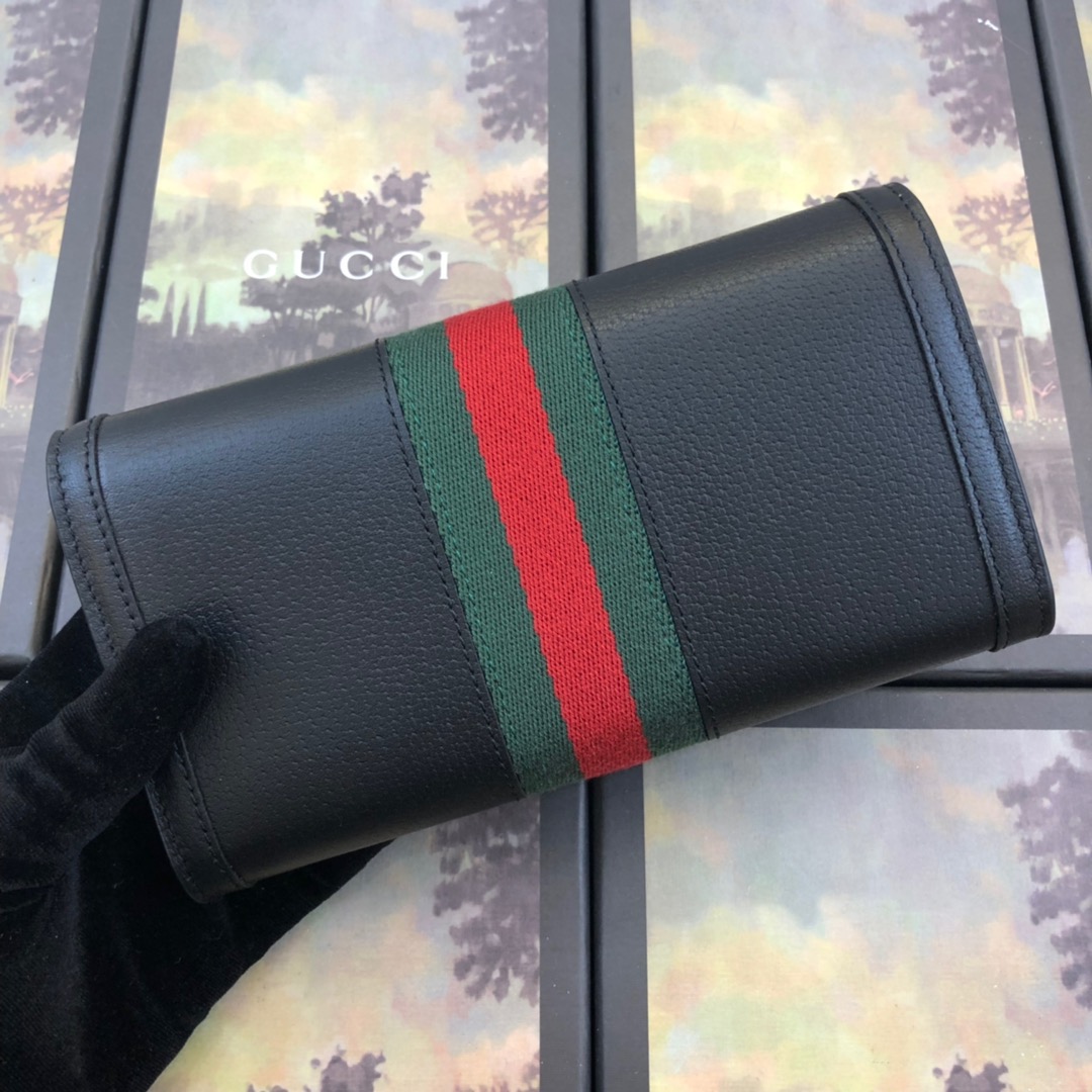 A kontinentális pénztárca egyesíti az aláírási dupla G részleteket a webcsíkkal – egy időtlen párosítással, amely Gucci gyökereivel beszél. A texturált fekete bőrből készített tartozék tiszteleg a retro ihlette referenciáknak, amelyeket az Ophidia világában éreznek.