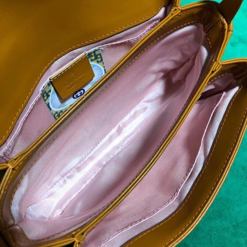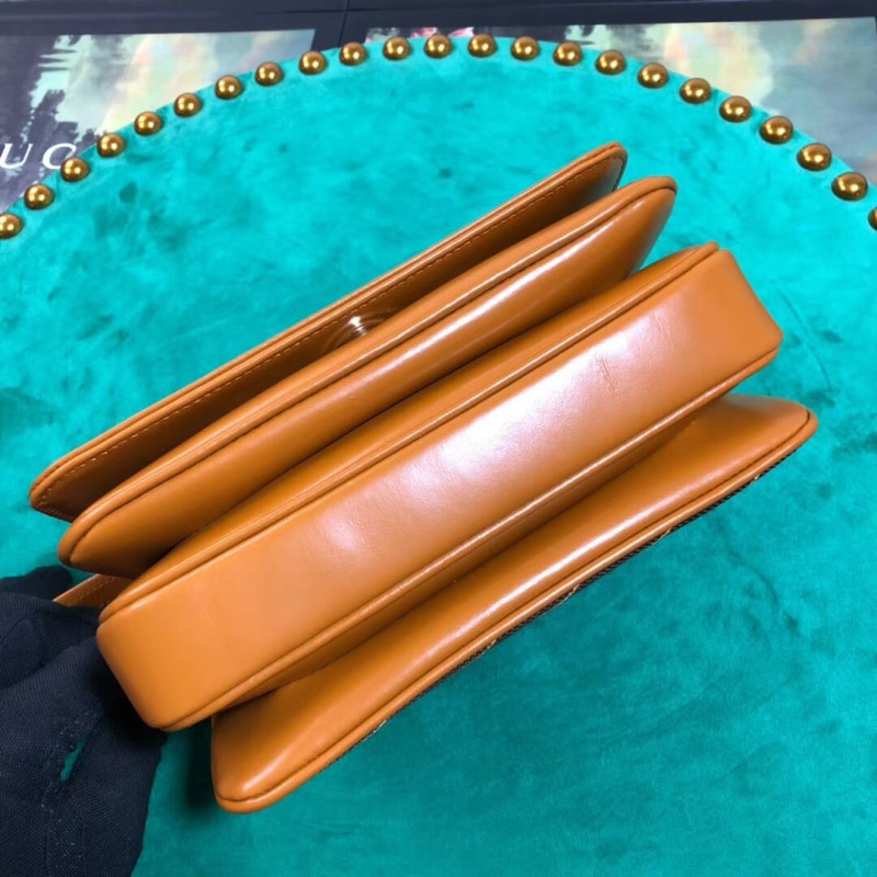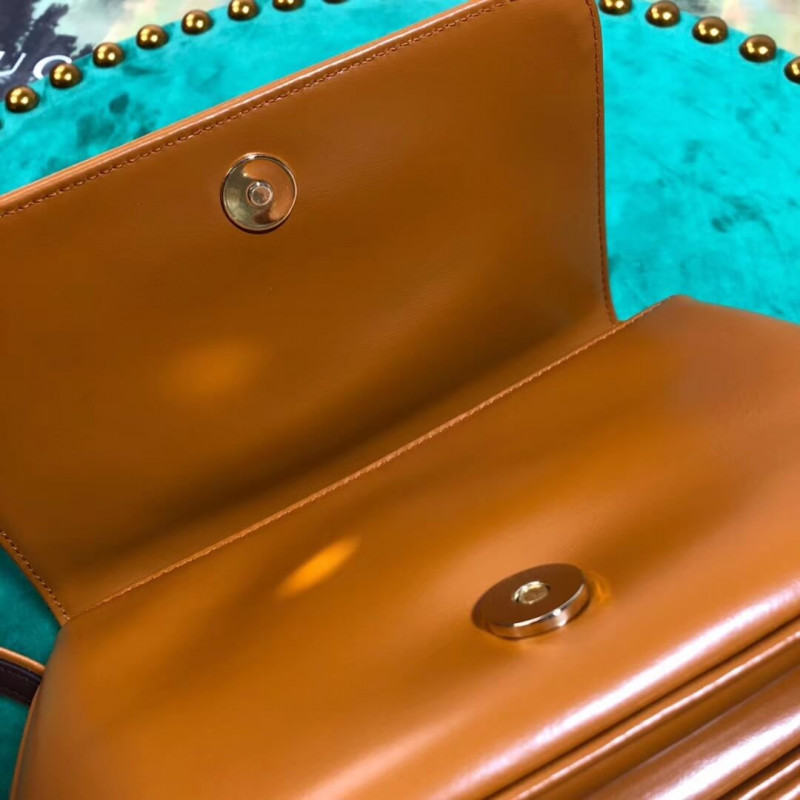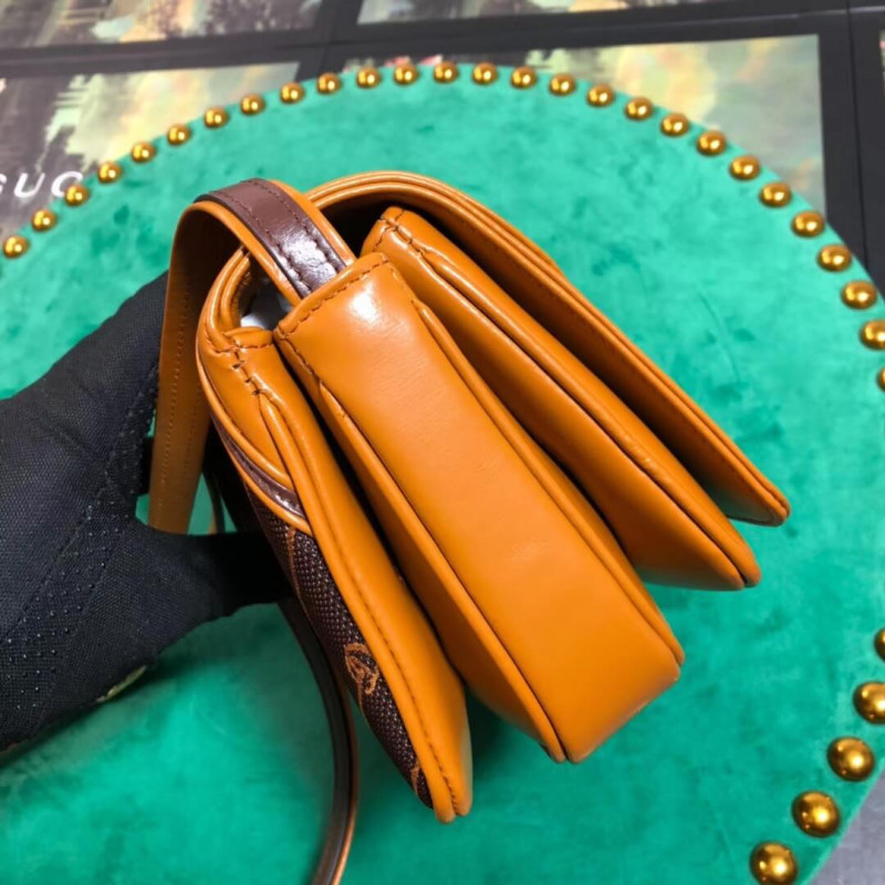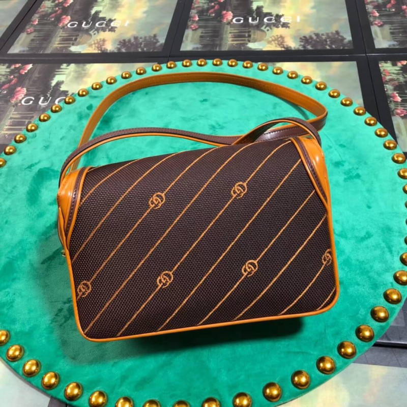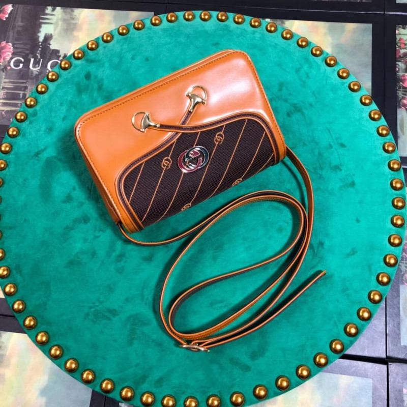 Ez a táska egy barna színű vászonszövetre is található, kettős csíkos logóval és arany hardverrel. Az elülső részben a márka reteszelése; GG logó a szárny közepén sötétzöld és bordóban van, és az alábbiakban kettős kereszteződésű hardver díszítéssel rendelkezik. Az állítható heveder sima bőrből készül, a táska két domináns színében, és a vállon vagy a kereszttesten viselhető. Az elülső szárnynak egy pillanatnyi buttonja van, amely megnyílik, hogy három elválasztást fedezzen fel egy bézs texturált fésű bélésben, két csúszós zsebvel a szervezéshez. Viselje ezt az eredeti Gucci válltáskát térdmagas bőrcsizmával és egy gyapjú köpenyt egy elbűvölő őszi ruhához.