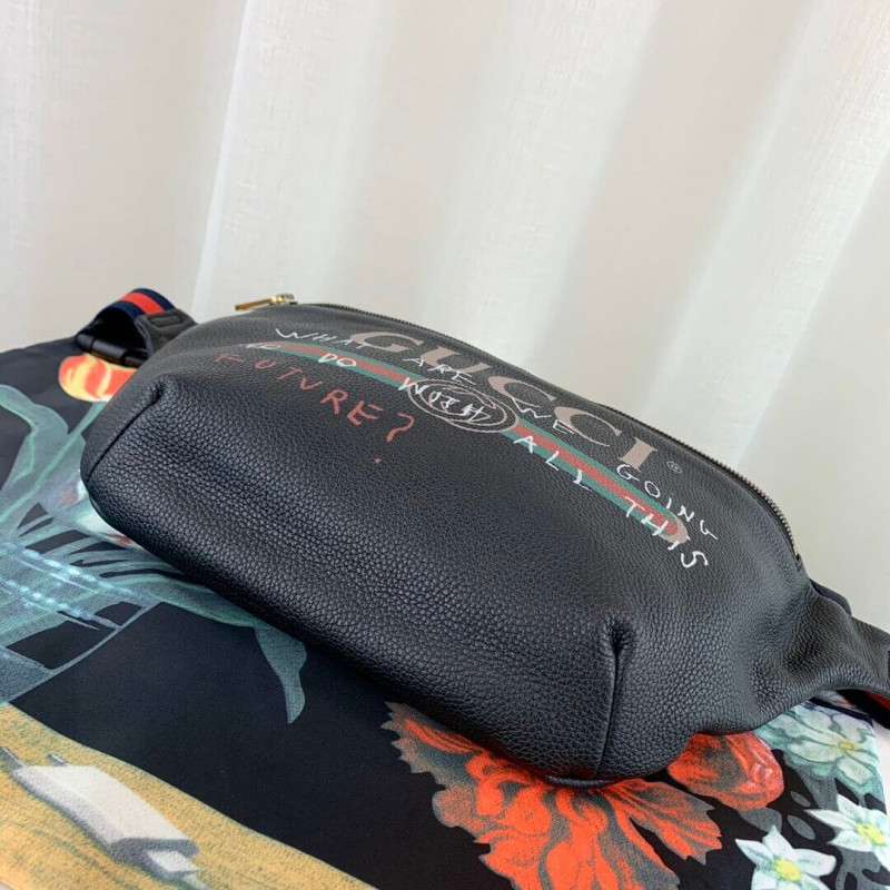 A nyolcvanas évek vintage nyomatainak ihlette, a Gucci logót előtérbe helyezik. A retro stílusú motívumot egy övzsák elején mutatják be, texturált bőrben. Web