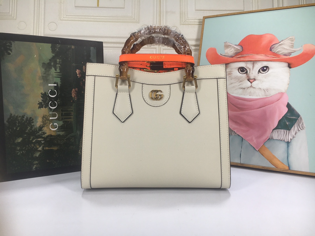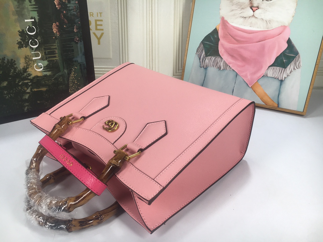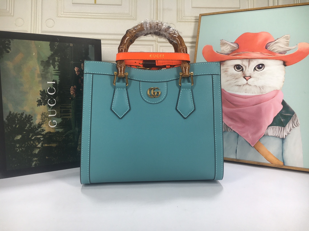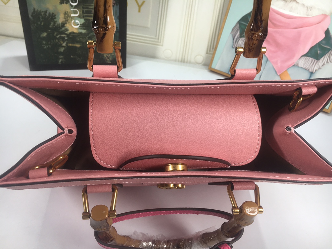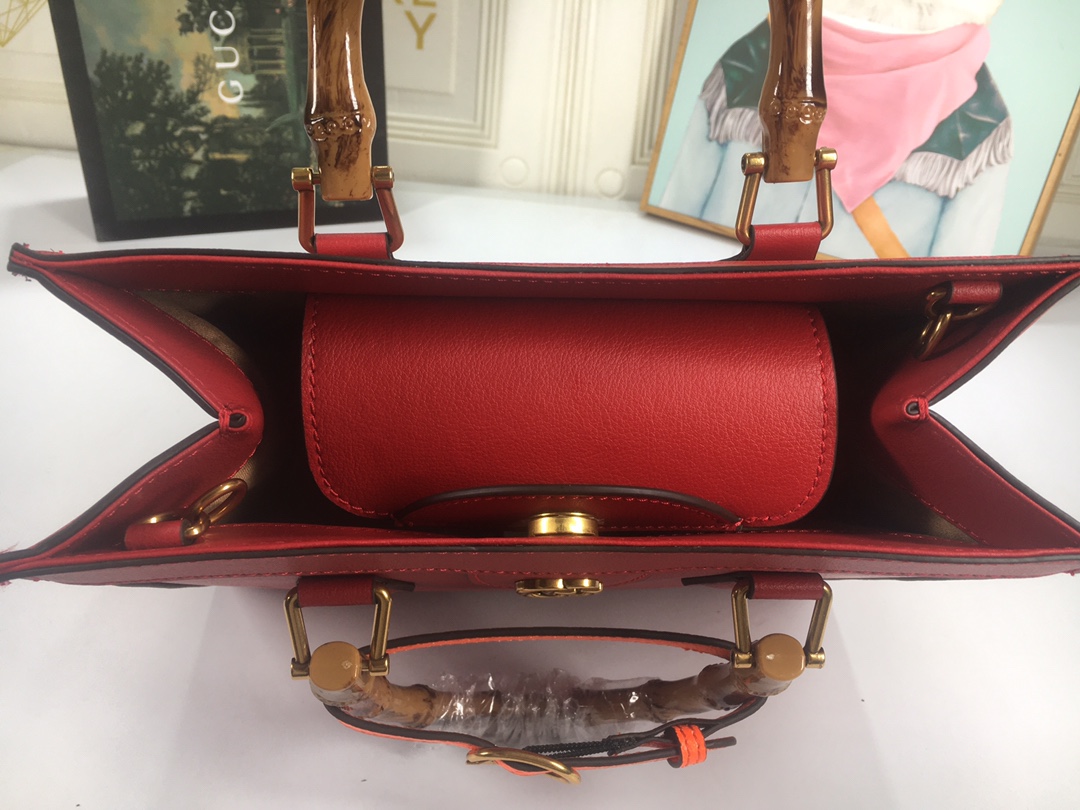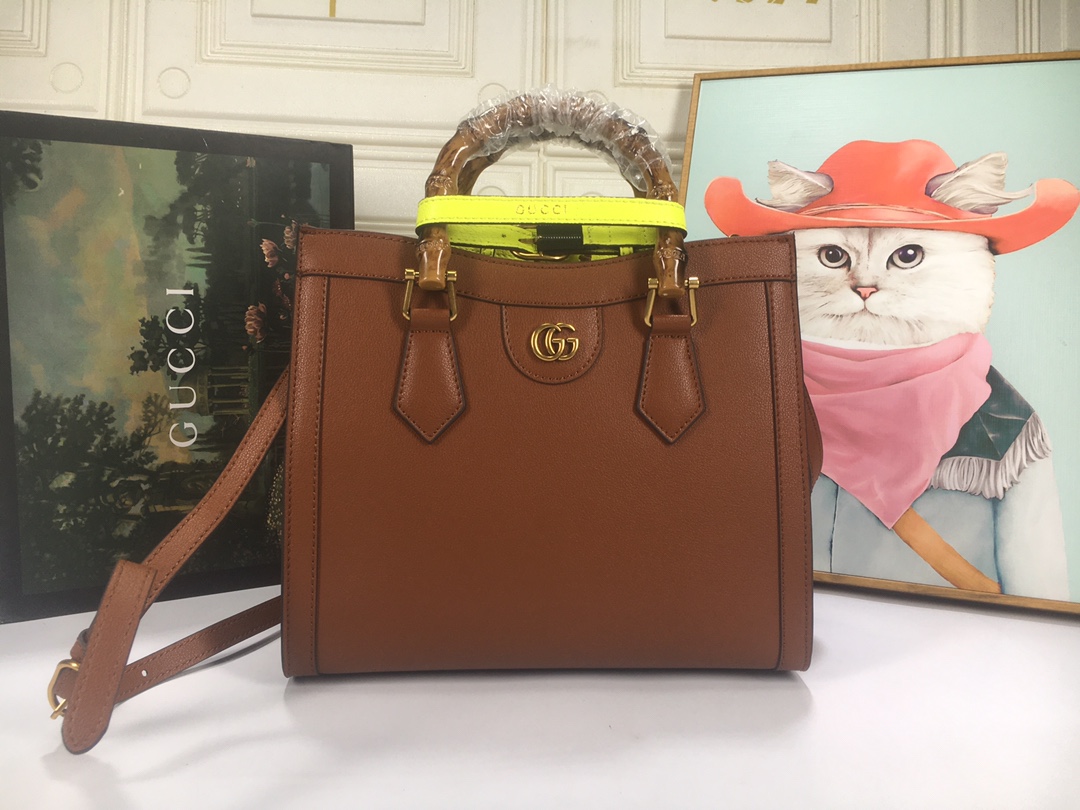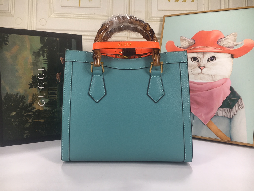 A ház felismerhető elemeit kombinálva a kis táskát a bambuszfogantyúk és a dupla G hardver határozza meg. A fekete bőrből készített tartozékot két neon heveder is hangsúlyozza, ez egy játékos hivatkozás a fogantyúk formájának tartásához használt sávokra.
