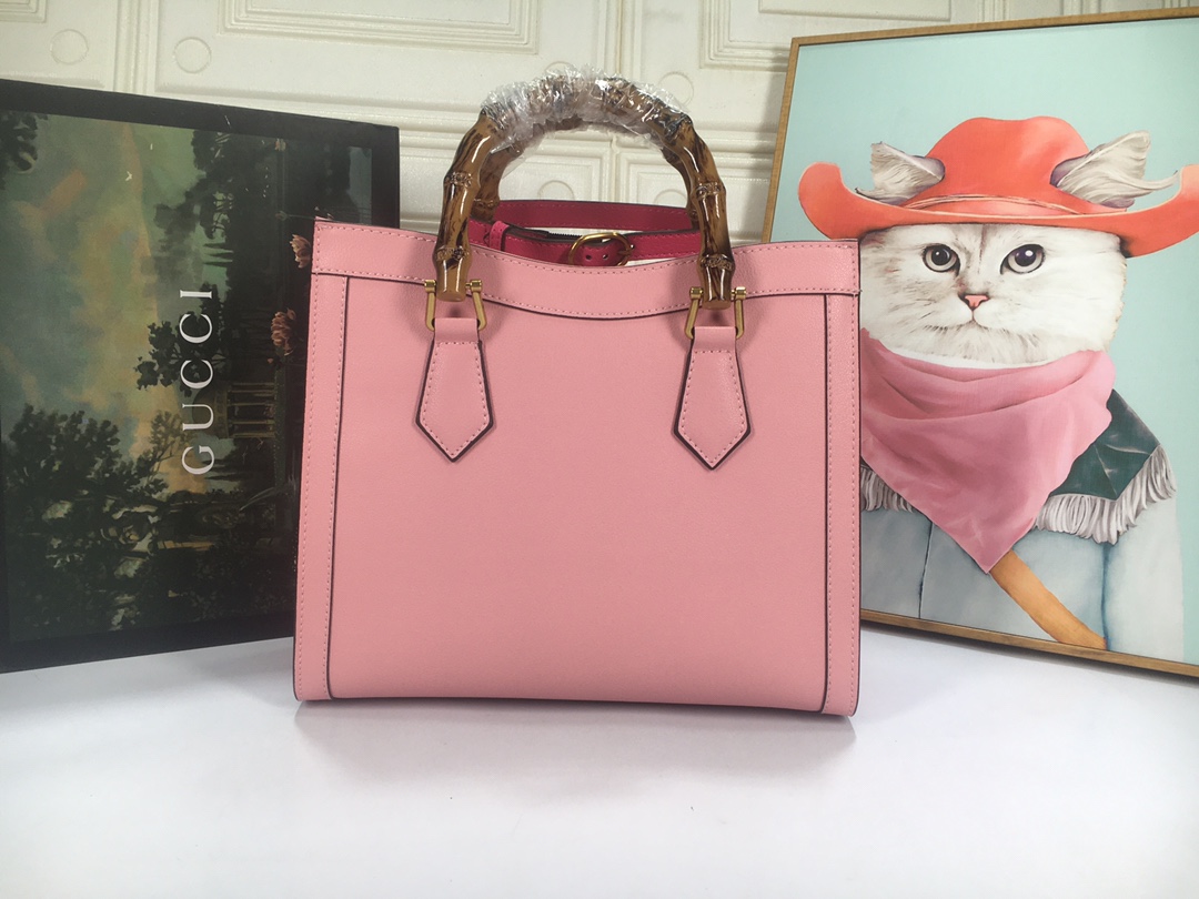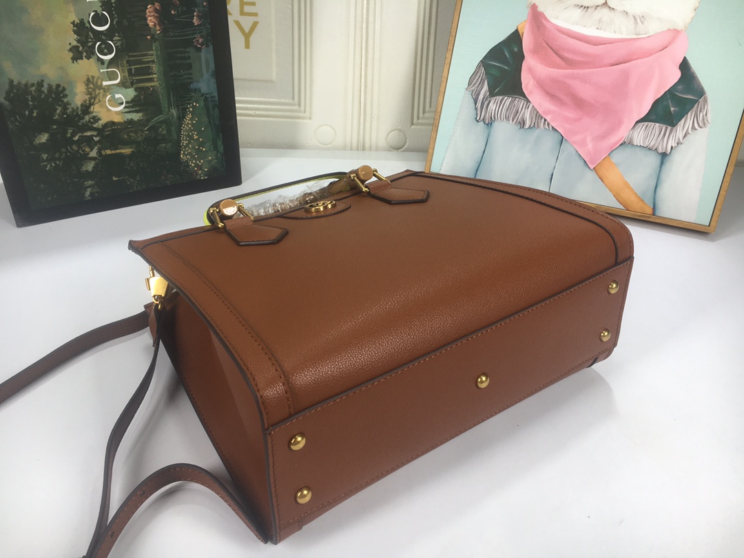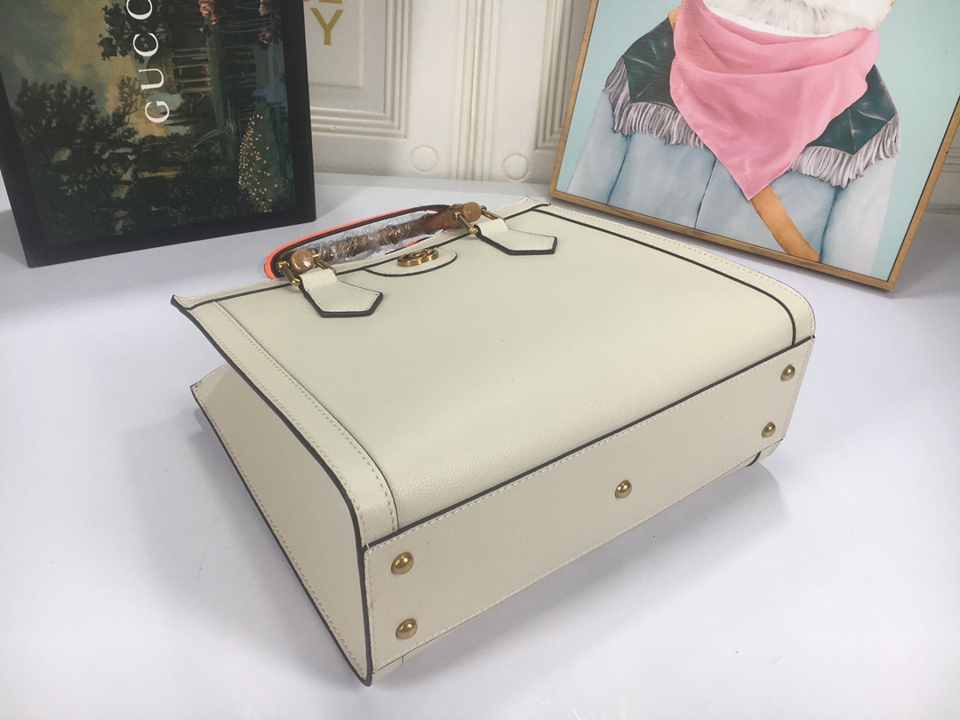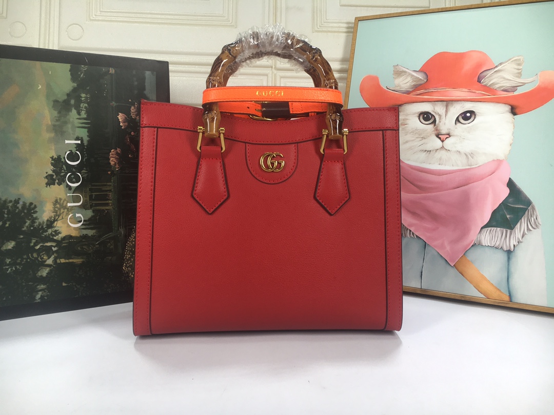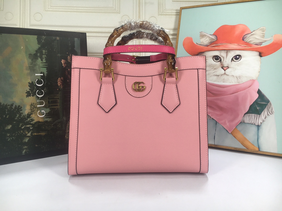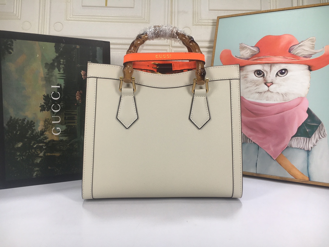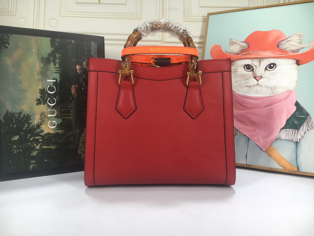 A ház felismerhető elemeit kombinálva a kis táskát a bambuszfogantyúk és a dupla G hardver határozza meg. A fekete bőrből készített tartozékot két neon heveder is hangsúlyozza, ez egy játékos hivatkozás a fogantyúk formájának tartásához használt sávokra.