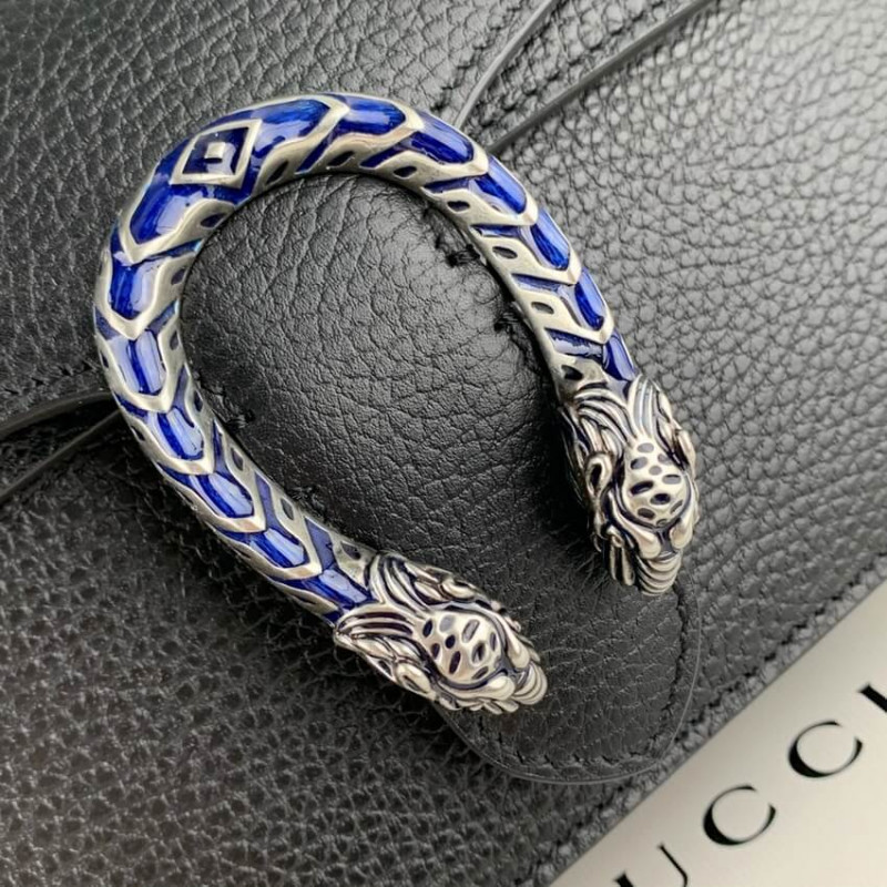 Egy üzenet a divat régi szabályainak hátrahagyásáról, az epilógus kollekció azt az elképzelést közvetíti, hogy a daraboknak időtlennek kell lenniük U2013 nem csak egy szezonban. A stílusok között szerepel az Alessandro Michele legszimblematikusabb tervei és motívumai az elmúlt öt évből, mint a Dionysus. A ház egyik szeretett vonala, a stílus egy kis válltáska, fekete, texturált bőrben. A színes csavar hozzáadásakor az elektromos kék zománc kiemeli az emblematikus tigrisfej bezárását. ] Tigrisfej bezárása