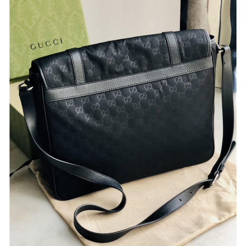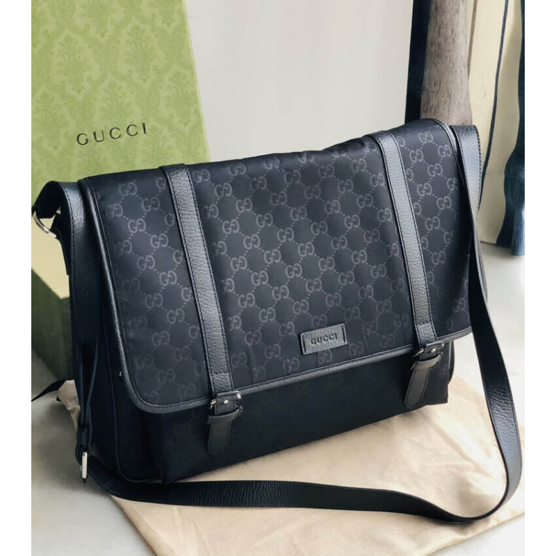 Ez a stílusos hírvivő táska fényűző texturált nylonból készül, sötétkékben. A táska állítható bőr vállszíjat tartalmaz, ezüst hardverrel és egy arccal, bőrszíjal.