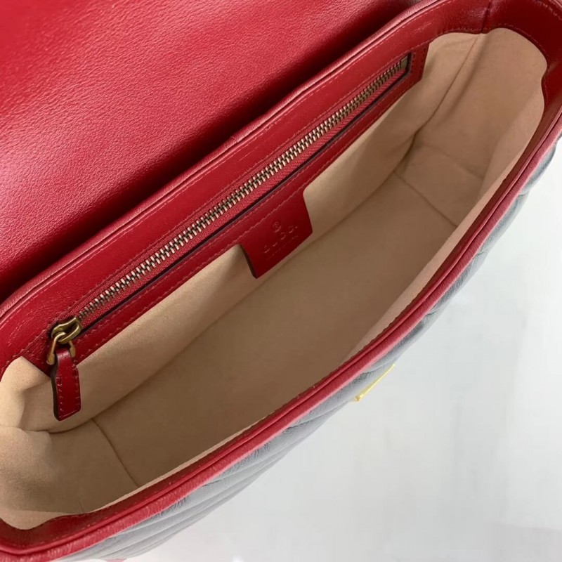 A GG Marmont táskát újraképzték a 2019-es előadásra, fekete átlós Matelasse paplanból készült bőrből, és egy csavart Torchon Double G díszítéssel készítik el. A kis láncú válltáska megkülönböztetett, lágyan strukturált alakját kontrasztos cerise csövekben vázolják, kiemelve annak szárnyának bezárását. A csúszó láncszíj simán átalakul az egyetlen vállhosszról a duplázott felső fogantyú hosszára, hogy többféle módon viselje a táskát.]] cerise bőr burkolat
