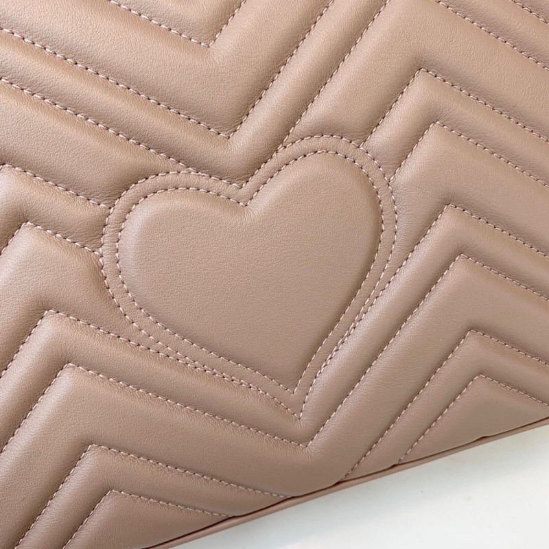 A közepes GG Marmont láncú válltáska lágyan felépített alakú és túlméretezett szárny bezárása dupla G hardverrel. A csúszó láncszíj többféle módon viselhető, a váll és a felső fogantyú között váltva. Matelasse chevron bőrből készült, hátul szívvel. G