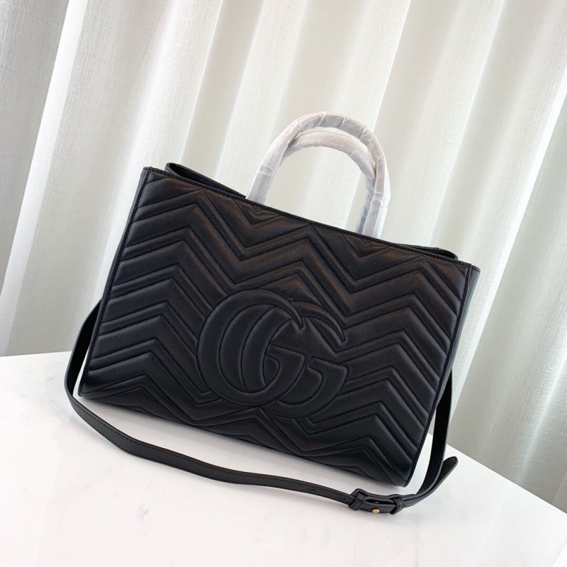 A közepes GG Marmont felső fogantyú táska lágyan felépített alakú, rejtett mágnes bezárással és a dupla G hardver kisebb változatával. Matelasse bőrből készült, chevron kialakítású és hátul gg. Fém lábak