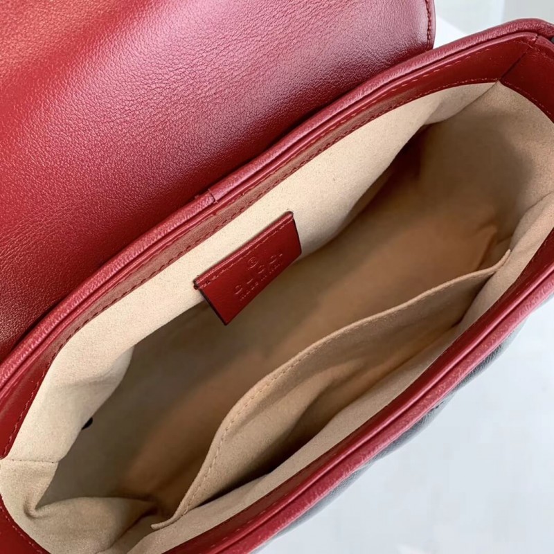 A GG Marmont táskát újraképzték a 2019-es előadásra, fekete átlós Matelasse paplanból készült bőrből, és egy csavart Torchon Double G díszítéssel készítik el. A mini felső fogantyú megkülönböztetett lágyan strukturált alakját kontrasztos cerise csövekben vázolják, kiemelve annak túlméretezett szárnyának bezárását. A cserélhető láncszíj lehetővé teszi a táska alakját is válltáskaként viselni.