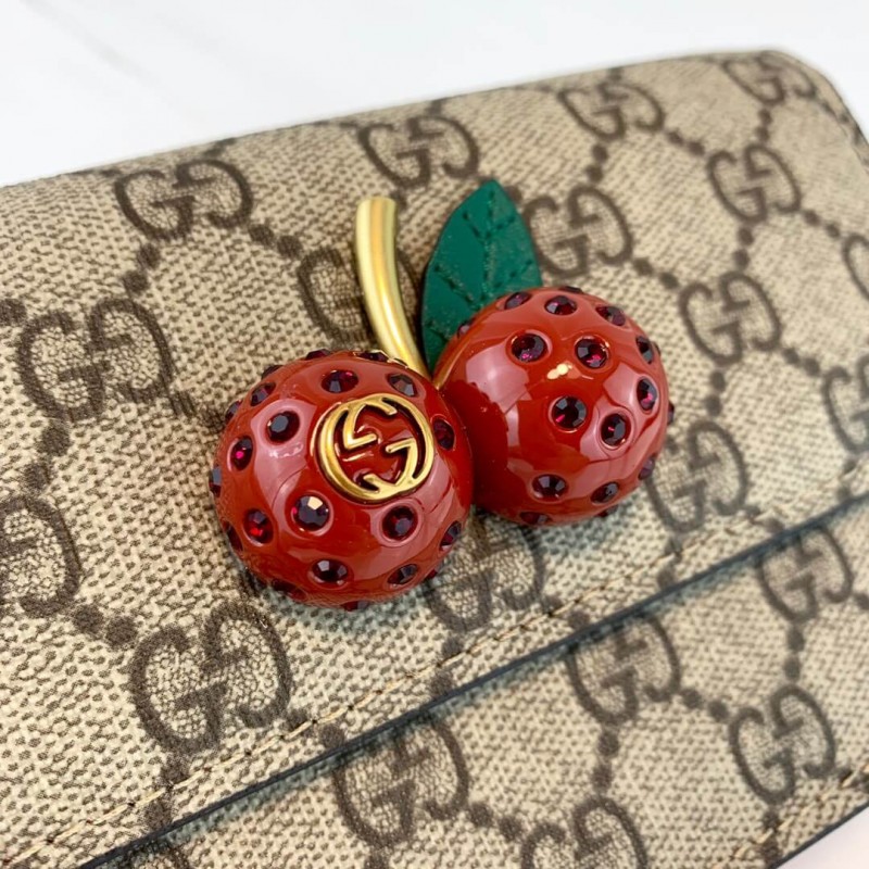 Egy háromdimenziós cseresznye-tartozék, beborított kristályokkal, kiemelkedik a GG háttérrel egy játékos érintéshez. Bőr díszítés