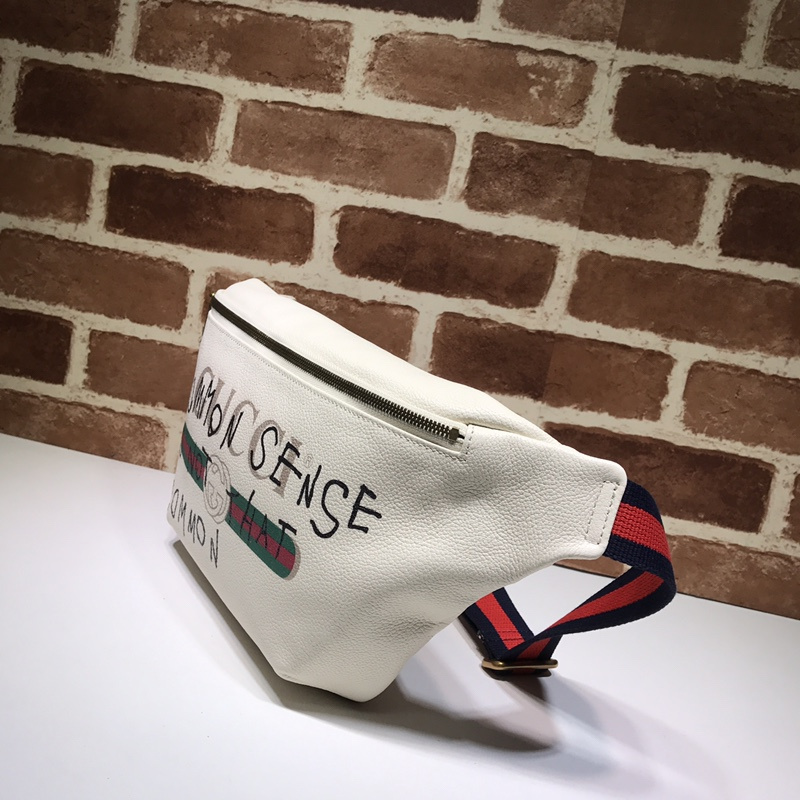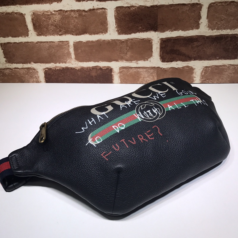 A nyolcvanas évek vintage nyomatainak ihlette, a Gucci logót előtérbe helyezik. A retro stílusú motívumot egy övzsák elején mutatják be, texturált bőrben. graffiti bőr övzsák 493869 fekete/fehér