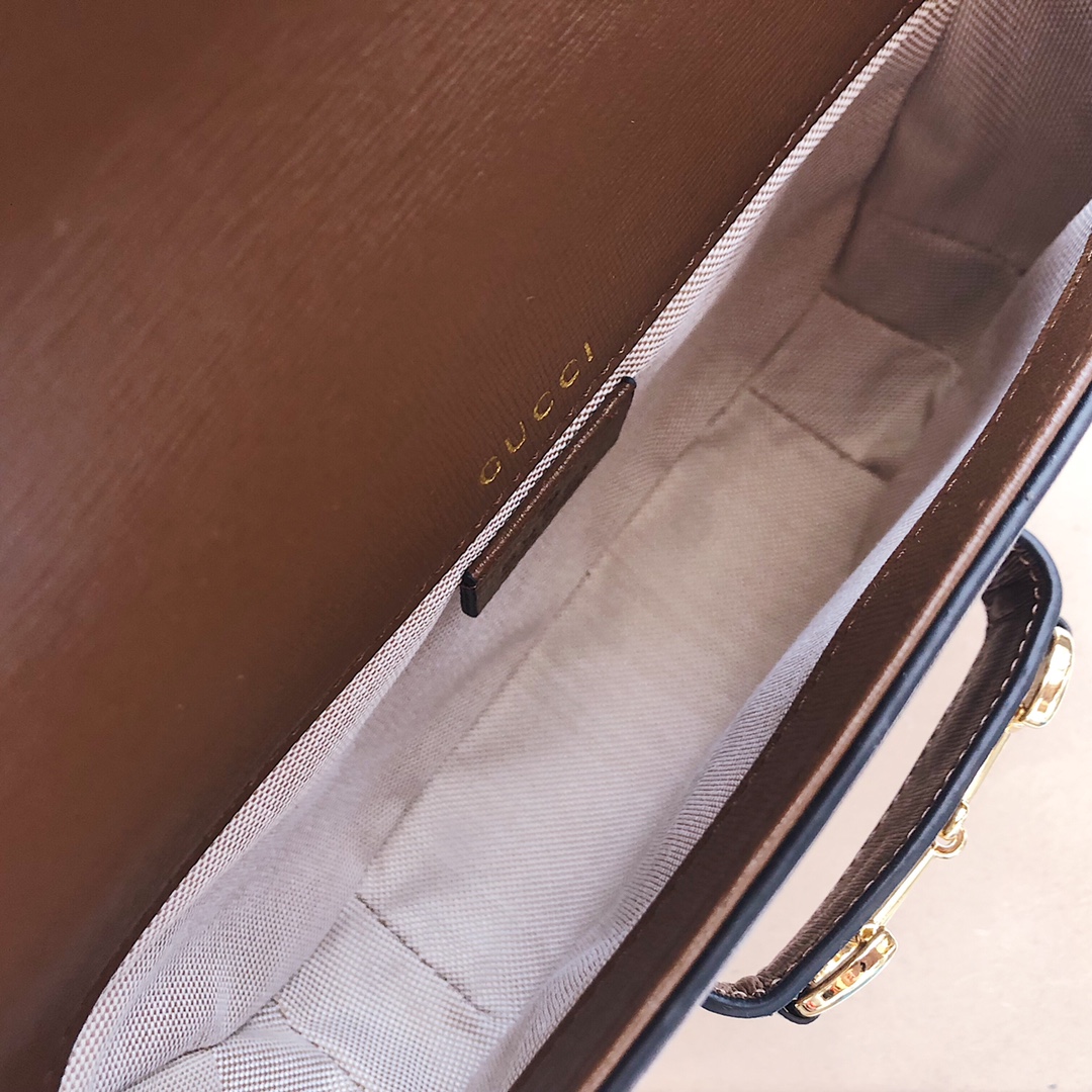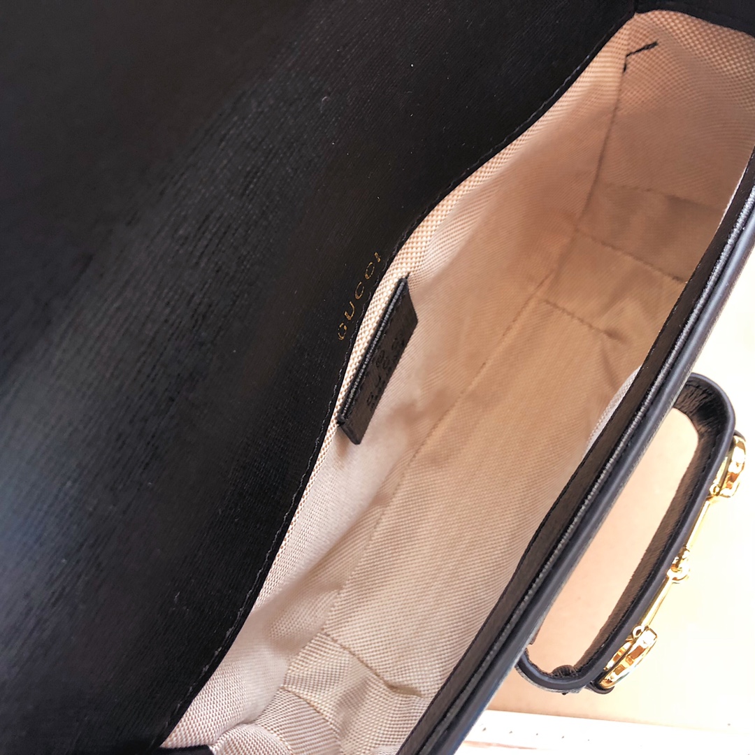 A Gucci Horsebit 1955 vékony verziói hibrid csavarást adnak a szüreti ihletésű sorhoz. Két különböző vállpántot dúsítva, a fekete bőr mini táska karaktere az alulértékelt eleganciából átalakul, tonális bőrpánttal egy erős logo -hangulattal, a piros és zöld webes opciónak köszönhetően.