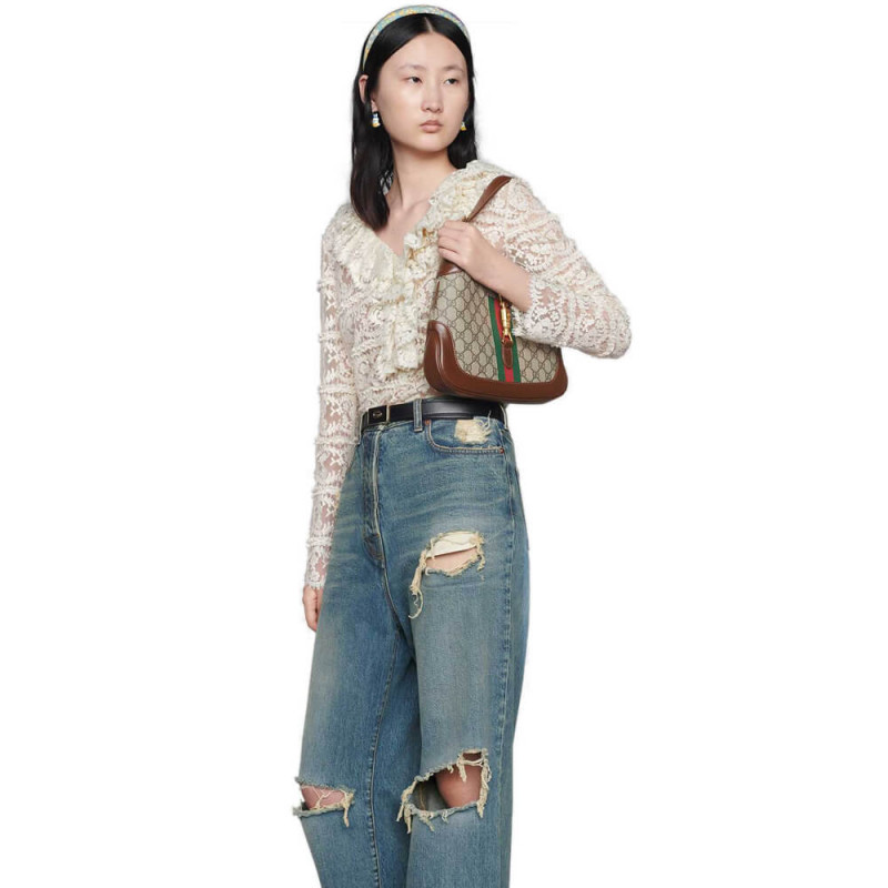 A Jackie táska újbóli bevezetése 2020. őszi téli új részvételt mutat be egy történelmi Gucci ikonra. Visszatérve az előtérbe, a felismerhető alakot a GG Supreme vászonban mutatják be, és egy további, levehető vállszíjjal javítják. A táskához csatolt csat bezárásával a második heveder kortárs érzést ad az archív stílushoz, új módszereket kínálva a felső fogantyú viselésére, a vállak átlépésére. A viselkedés és stílus sokoldalú módjaival rendelkező darabok magukban foglalják magukat, akik a ház egyéni szellemének része. A Jackie 1961: Kizárólag a Gucci üzletekben és a gucci.com -on érhető el