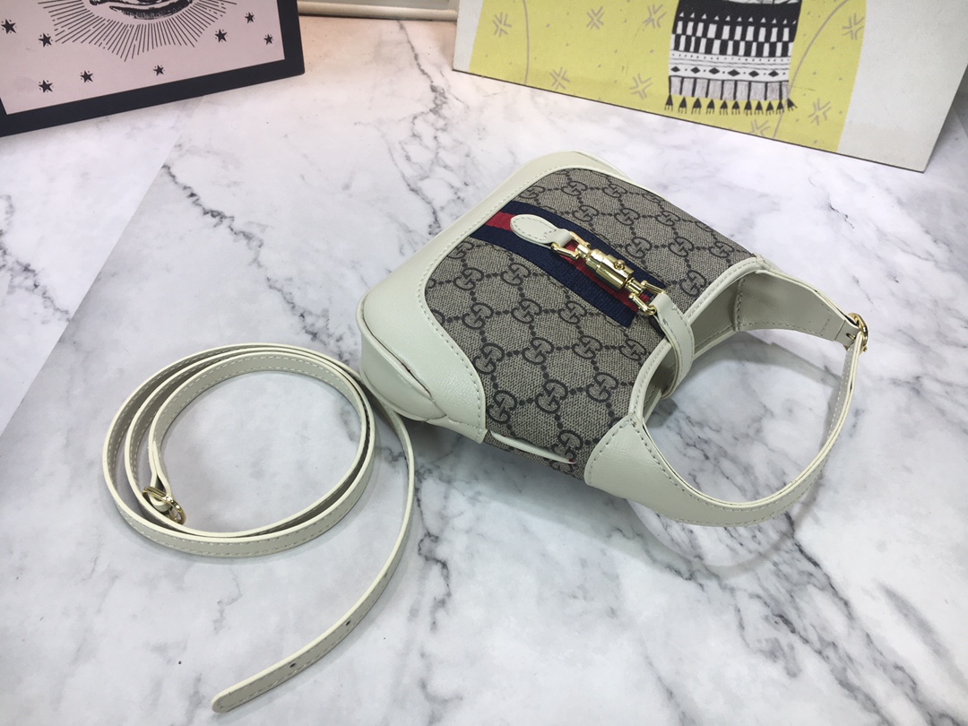 A Jackie táska mini méretben történő újbóli bevezetése 2020 őszi téli új részvételt mutat be egy történelmi Gucci ikonra. Visszatérve az előtérbe, a felismerhető alakot a GG Supreme vászonban mutatják be, és egy további, levehető vállszíjjal javítják. A csat bezárásával a táskához rögzítve a második heveder kortárs érzést ad az archív stílushoz, és új viselési lehetőségeket kínál – a felső fogantyútól, a válltól a test keresztezéséig. A viselkedés és stílus sokoldalú módjaival rendelkező darabok magukban foglalják magukat, akik a ház egyéni szellemének része. Jackie 1961 Mini Hobo Bag 637092