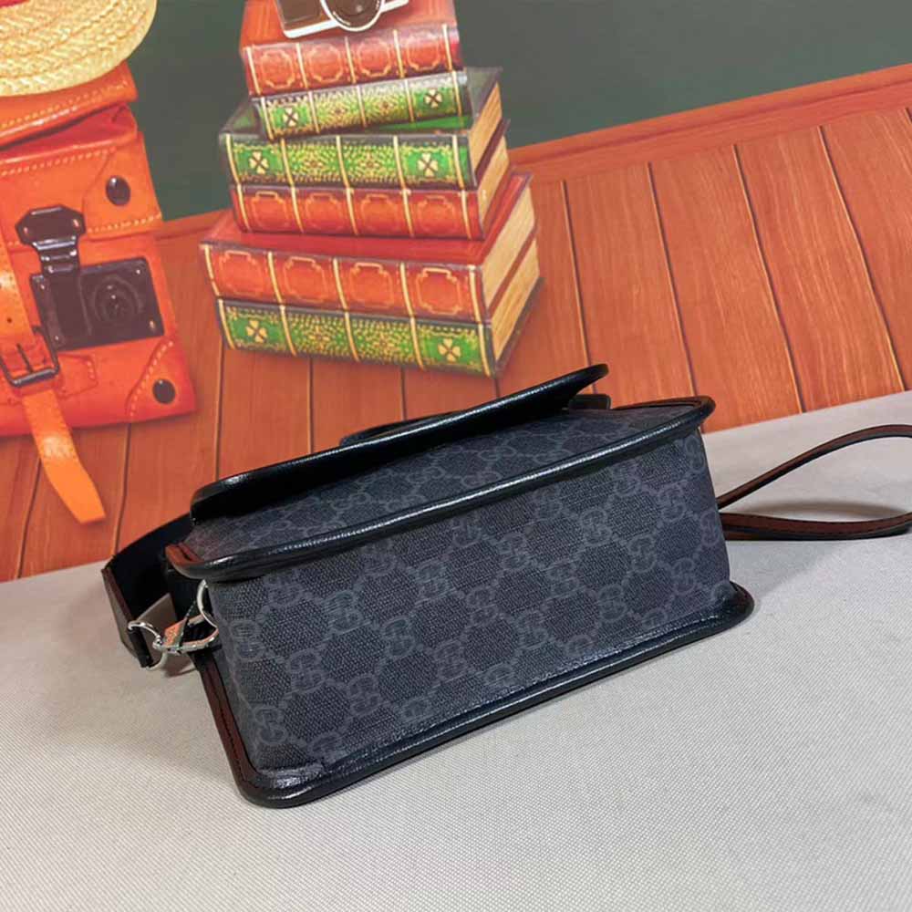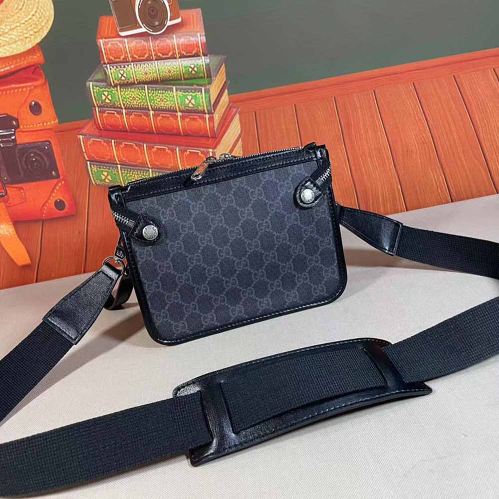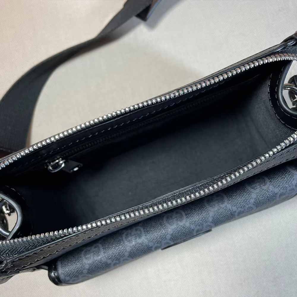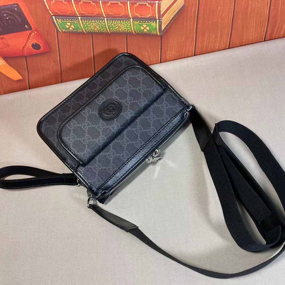 A színek animálják a Gucci Aria kollekciót, amely összejön az anyagok, textúrák és formák szövésére egy történetbe. A kortárs él hozzáadásával az archívszövethez, ez a messenger táska a GG Supreme vászonból készül, fekete. A tartozékot az összekapcsoló G – bőrcímkékként kell kitölteni.
