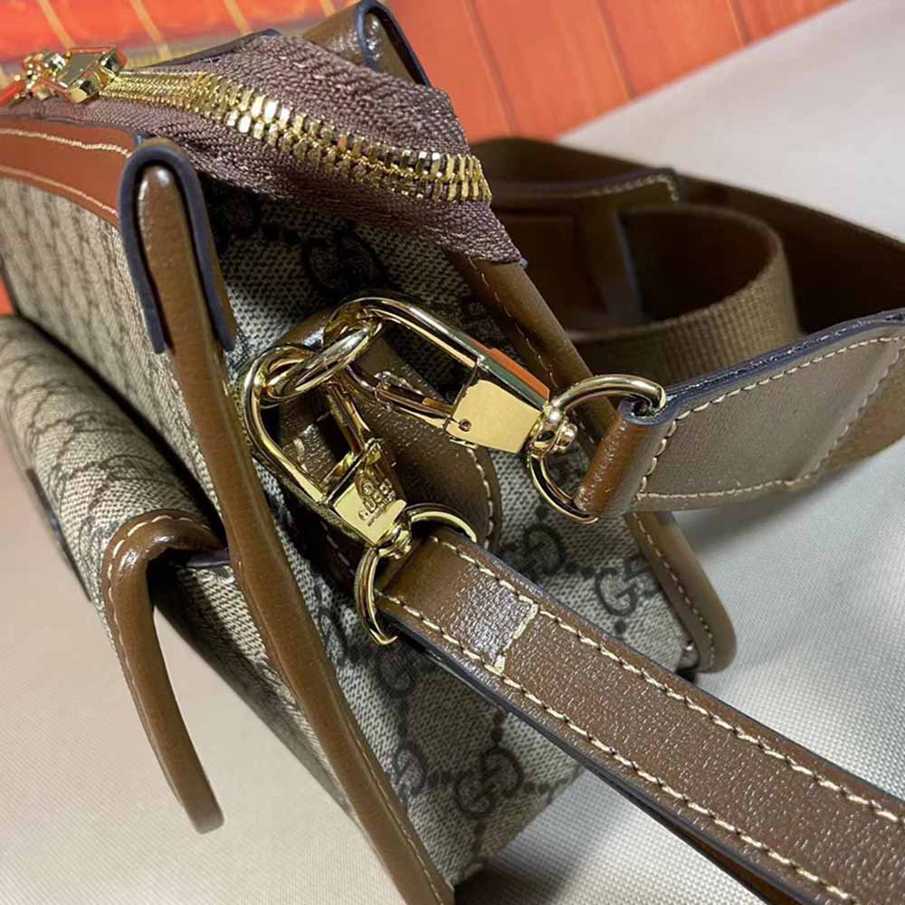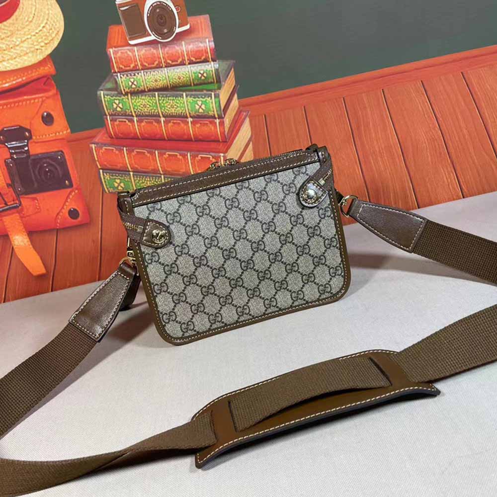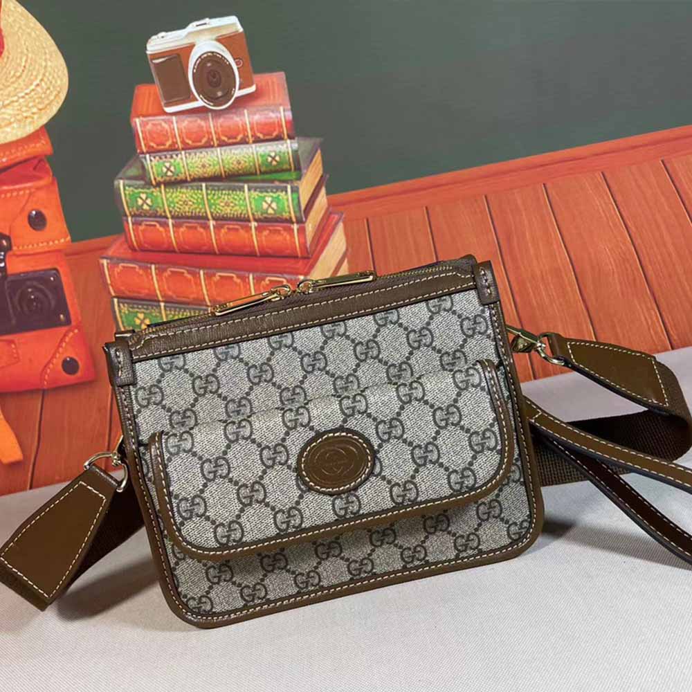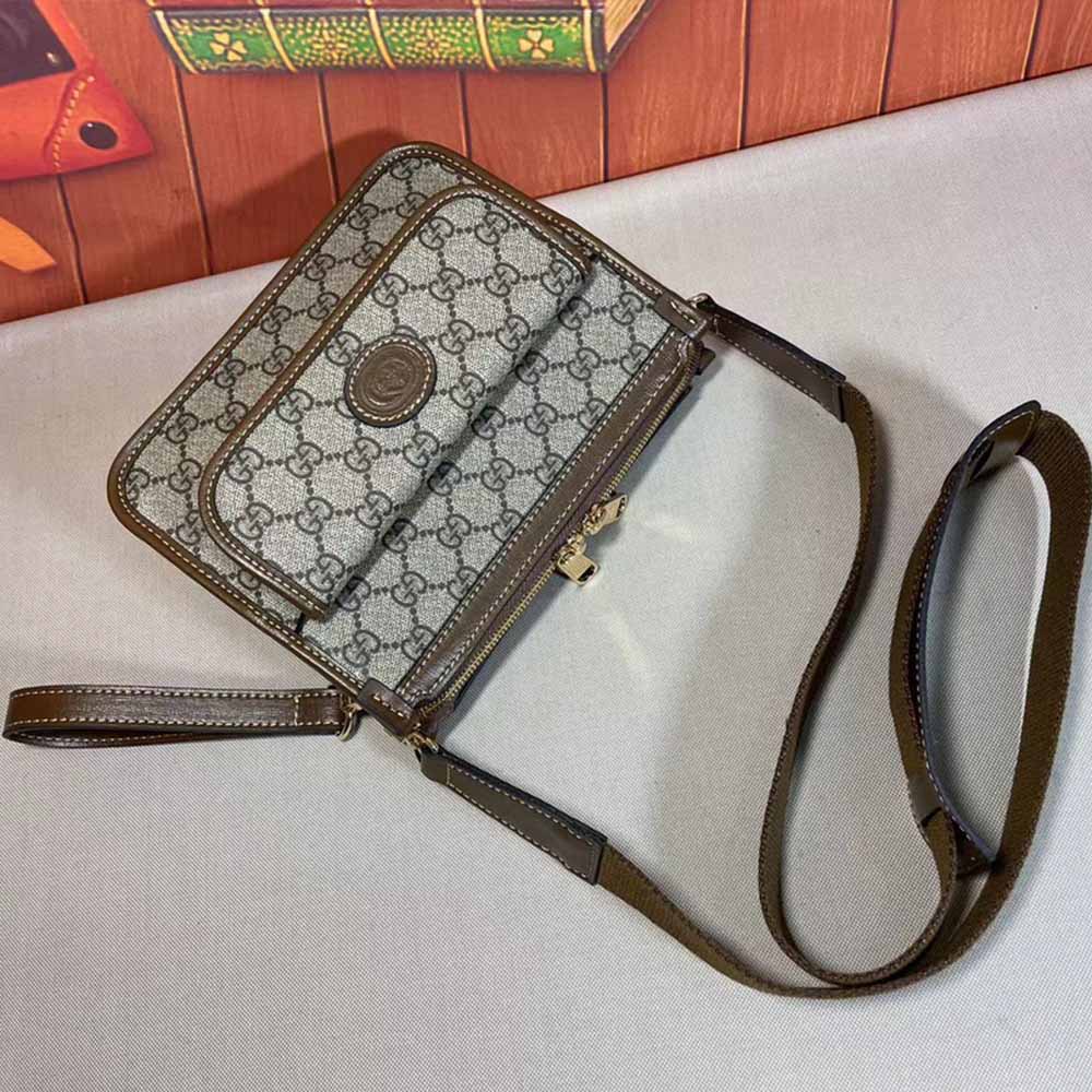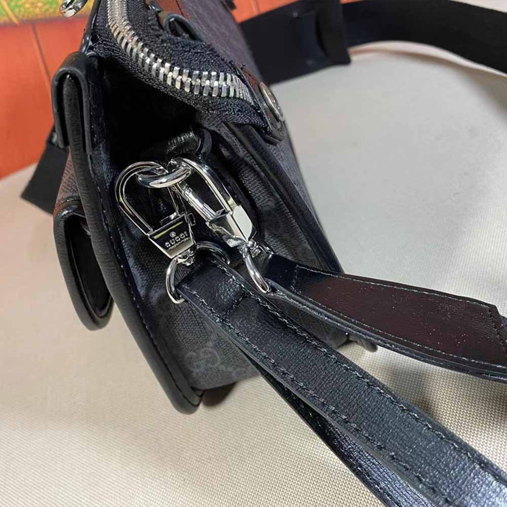 A színek animálják a Gucci Aria kollekciót, amely összejön az anyagok, textúrák és formák szövésére egy történetbe. A kortárs él hozzáadásával az archívszövethez, ez a messenger táska a GG Supreme vászonból készül, fekete. A tartozékot az összekapcsoló G – bőrcímkékként kell kitölteni.