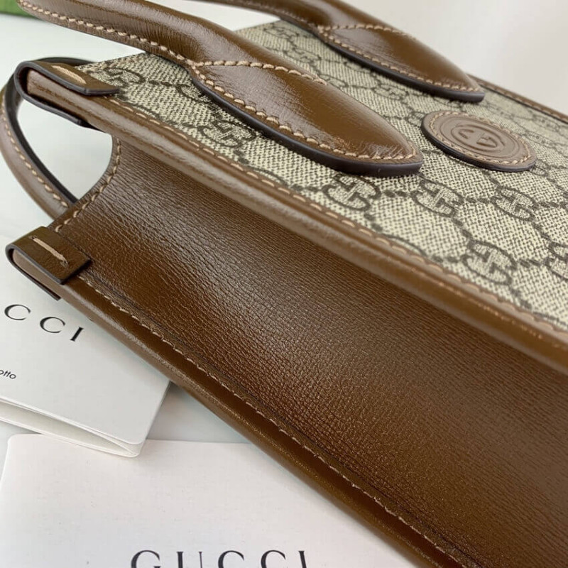 A G -reteszelő G a ház egyik legszimbolikusabb kódja maradt a bevezetése óta. A megkülönböztető embléma bőr részletként jelenik meg ezen a tó tetején. A design logóérzetének befejezésével a táska monogram vászonból készül.