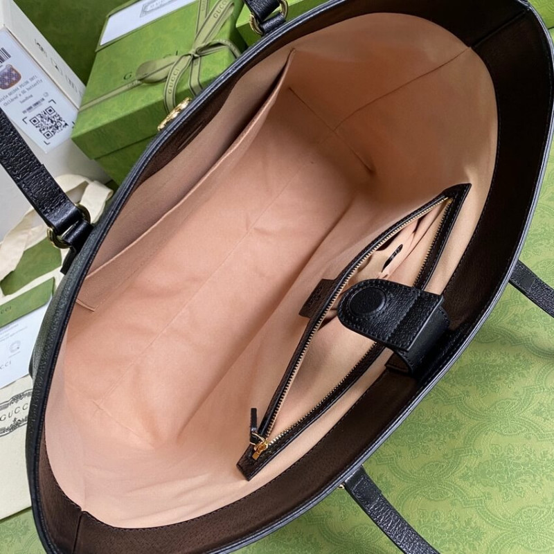 A szüreti részletekkel dúsítva az Ophidia világa kibővül egy fekete bőr táska bevezetésével. A lágyan strukturált sziluetttel a táska két levéltári részletet párosít, mint a ház eredetének tisztelgését. A Double G hivatkozás Guccio Gucci monogramjára, míg a zöld és a vörös webcsík a márka lovas gyökerei ünnepe. Fekete bőr