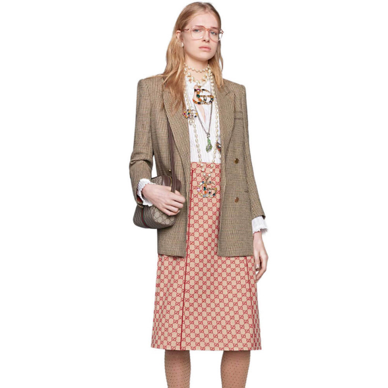 Az 1970 -es években először a GG logó az 1930 -as évektől kezdve az eredeti Gucci Rhombi formatervezés fejlődése volt, és ettől kezdve Gucci örökségének megalapozott szimbóluma volt. Ez a kis válltáska ötvözi az aláírási motívumot a Web Tribea időtlen párosításával, amely tisztelettel ad Gucci gyökereit. , barna bőr díszítéssel
