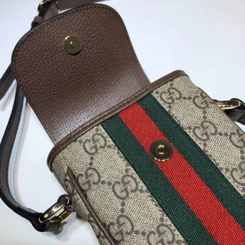 Bézs/Ebony GG Supreme vászon, egy alacsony környezeti hatású anyag, barna bőr díszítéssel