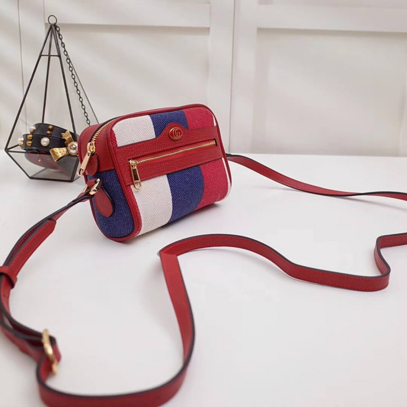 Az eredetileg az indiai táncosok áramló ruhái befolyásolják a Baidera -szövetet a ház archívumából, és újraértelmezik a fehér, kék és piros színek sylive webes színeivel. Az előzetes 2018-as kollekció során feltárt tengerészgyalogság megtestesítésével a csíkos vászon vászon egy Ophidia mini táskára jelenik meg. Vörös bőrből vágva és a dupla G ovális részletekkel elkészítve, a kialakítást állítható vállszíj segítségével lehet viselni, vagy külön táskához rögzíthető a mellékelt kulcsgyűrűvel.