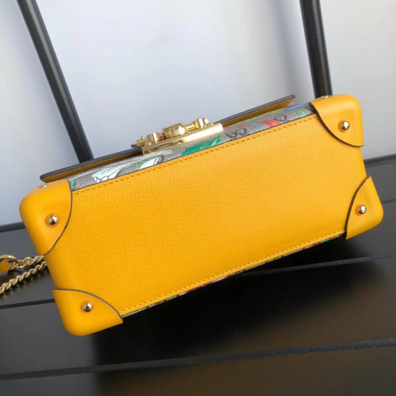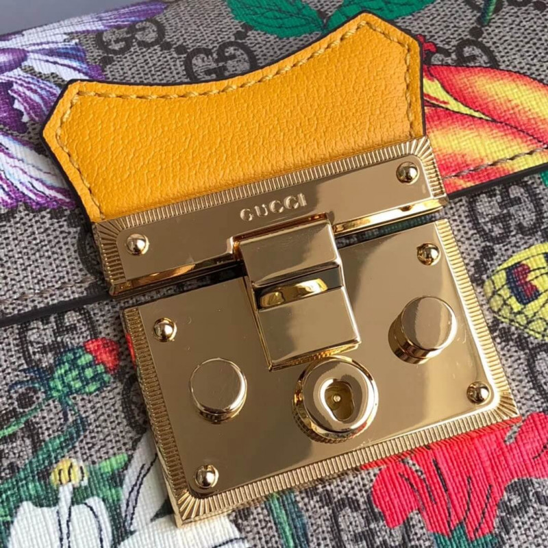 A Gucci Patlock GG Flora kistáskája egy kivételes darab, amely a márka két jellegzetes motívumát ötvözi egy friss és modern szövetbe. A klasszikus alakzatot, mint a bambusz fogantyús, lakatos válltáskát, életre kelti. A több mint 50 évvel ezelőtt Vittorio Cacornero által bemutatott ikonikus Flora minta a ház monogramjára rétegeződik, és élénk sárga bőrrel díszítik, amely kiemeli a két archív mintát.