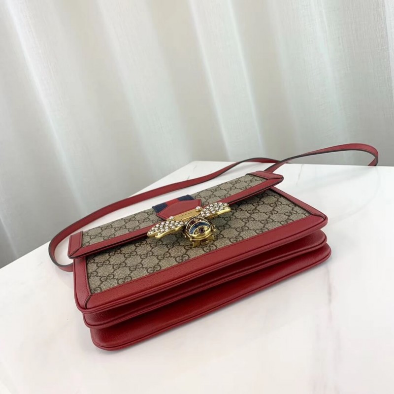 A történelmi Gucci részletek és az újonnan létrehozott kódok eklektikus keveréke a 2018. évi előzetes 2018. évi Margaret vonalhoz a GG Canvas-ban, egy sokoldalú szövetben kerül bemutatásra, amely továbbra is tiszteleg a ház gyökereihez. A 70 -es évek archívumainak ihlette, az üveggyöngyökkel dúsított méh és a multicolor kristályok meghatározzák ennek a közepes válltáskának a bezárását, piros bőrben vágva. Legfelsõbb vászon, alacsony környezeti hatású anyag, piros bőr díszítéssel