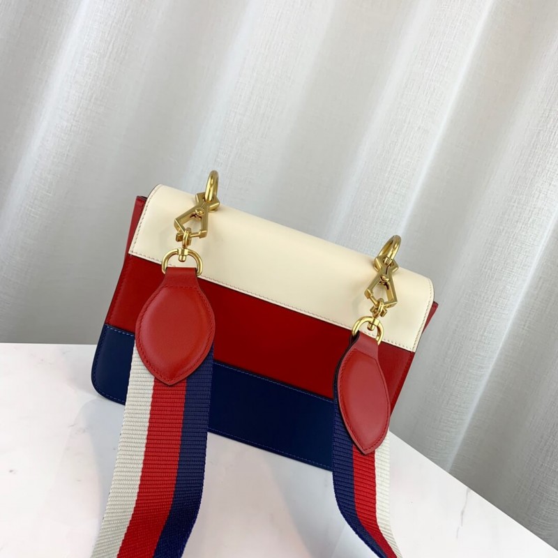 A Queen Margaret vonal keveri az ikonikus Gucci részleteket az újonnan létrehozott kódokkal. A 70-es évek archívumából származó méh-A történelmi Gucci kódot üveggyöngyök és multolor kristályok gazdagítják. Az arany dombornyomott személyi igazolványa; vakok a szerelemért, az inkluzív romantikára való hivatkozás a felső fogantyú felett lóg. Sima bőrből készült, enyhe ragyogással, színes blokk kialakításban. A szerelemhez