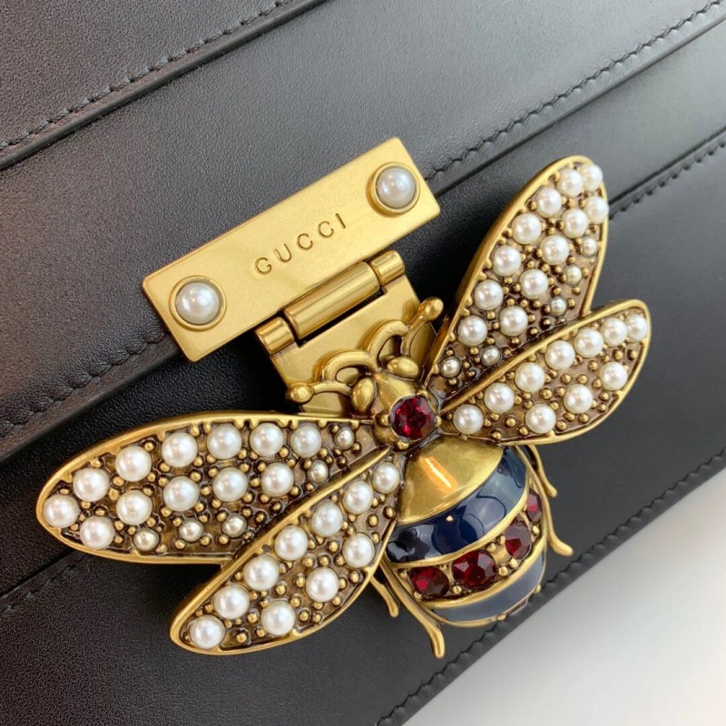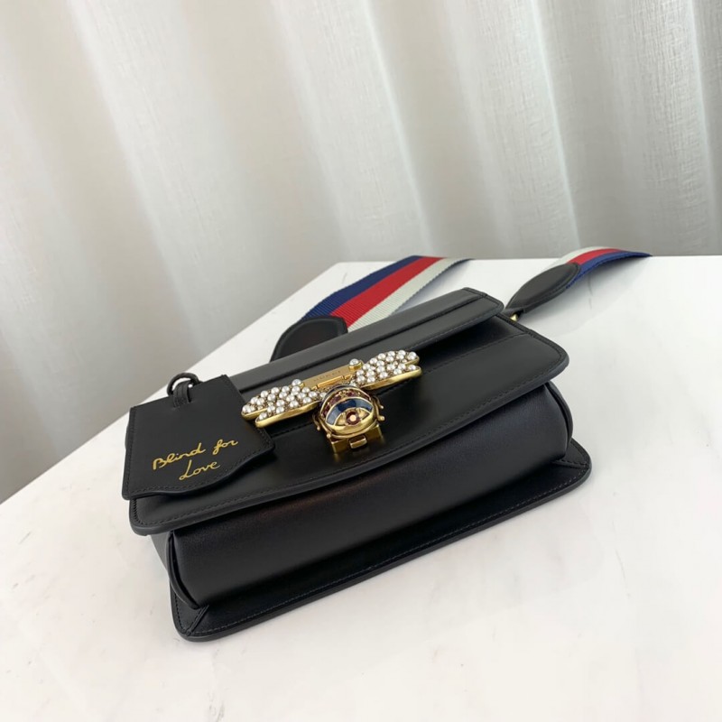 A Queen Margaret vonal keveri az ikonikus Gucci részleteket az újonnan létrehozott kódokkal. A 70-es évek archívumából származó méh-A történelmi Gucci kódot üveggyöngyök és multolor kristályok gazdagítják. Az arany dombornyomott személyi igazolványa; vakok a szerelemért, az inkluzív romantikára való hivatkozás a felső fogantyú felett lóg. Sima bőrből készül, enyhe ragyogással, színes blokk kialakításban.]] arany tónusú hardver