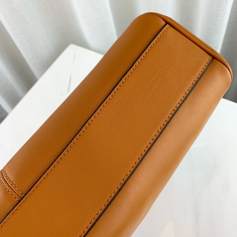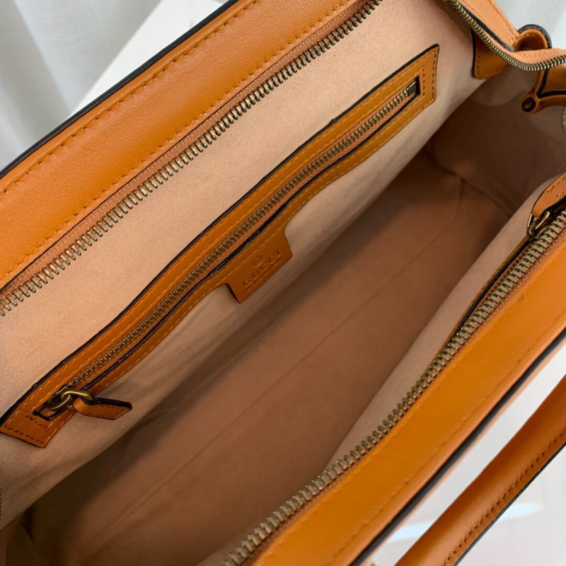 A keretes kialakítású puha felépítés meghatározza a felső fogantyút, amelyet a rugalmas természetes gabona bőrből készítenek, mosott és szálcsiszolással, amely kissé kopott, mégis kifinomult érzést kölcsönöz az alaknak. Finom hivatkozások a házra tovább gazdagítják a táska oldalát. A ház aláírási emblémájának archív újbóli megtorlása az egyik oldalát díszíti, míg a másik a macskafejet ábrázolja.
