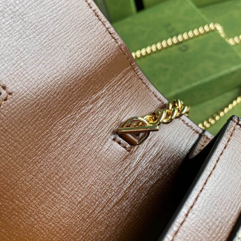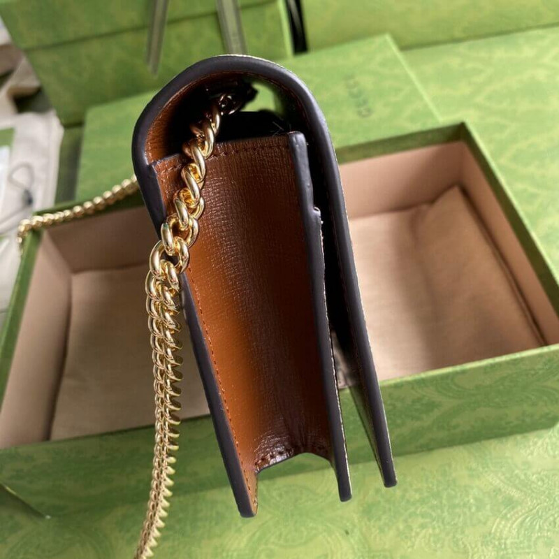 A ház monogram vászonból készült lánckártya -pénztárca a Valentin -nap tiszteletére készült. A romantika emblémája, a stílus 3D-s szív alakú részletekkel rendelkezik a Gucci logóval. A Gucci Logo