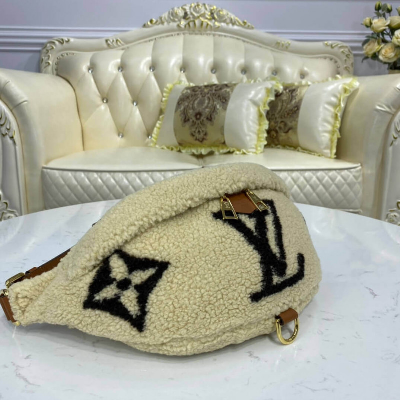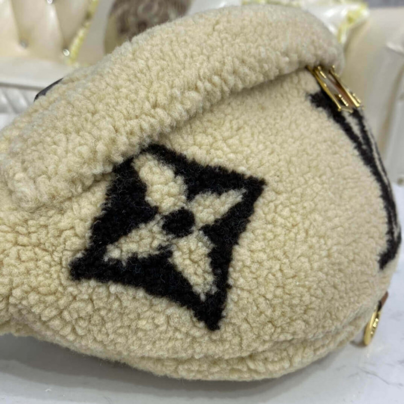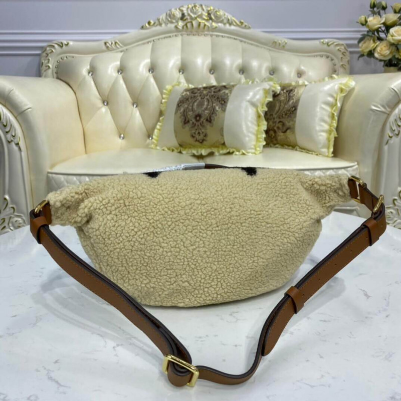 A Louis Vuitton trendje a Bumbag-t a Monogram LV Teddy Limited Edition szuper-puha Shearling-ben vizsgálja meg. A ház bőráruinak know -how bemutatásával a monogrammintát barna és creme bézs színben alakítják ki egy bonyolult intarsia technika alkalmazásával. A táska bolyhos megjelenése és a szuper-puha érzés tovább javítja divat-vonzerejét. Trim