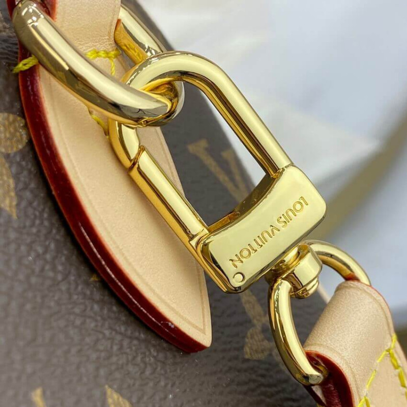 Mint a ház történelmi gyors utazótáskájának apró változata, a Speedy Bandouliere 20 kézitáska a Monogram Canvas -ból készül, természetes tehénbőr díszítéssel. A hengerelt bőr felső fogantyúkon kívül egy széles, leszerelhető textil heveder található, szövött Louis Vuitton aláírással. Ennek a táskának a klasszikus kialakítása piros textilbéléssel fejeződik be. Hardver