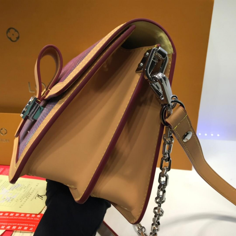 Az 1970 -es évek Louis Vuitton táskájának ihlette, a Dauphine MM kézitáska rugalmas borjúbőrből készül, amely a Monogram LV pop -nyomtatását élénk rózsaszínen tartalmazza. A motívum neonhatása divatos előnyt jelent ehhez a retro-elegáns táskához. A rózsaszín guilloche gravírozás a Dauphine LV záron pop érzést ad. ] mikroszálas bélés