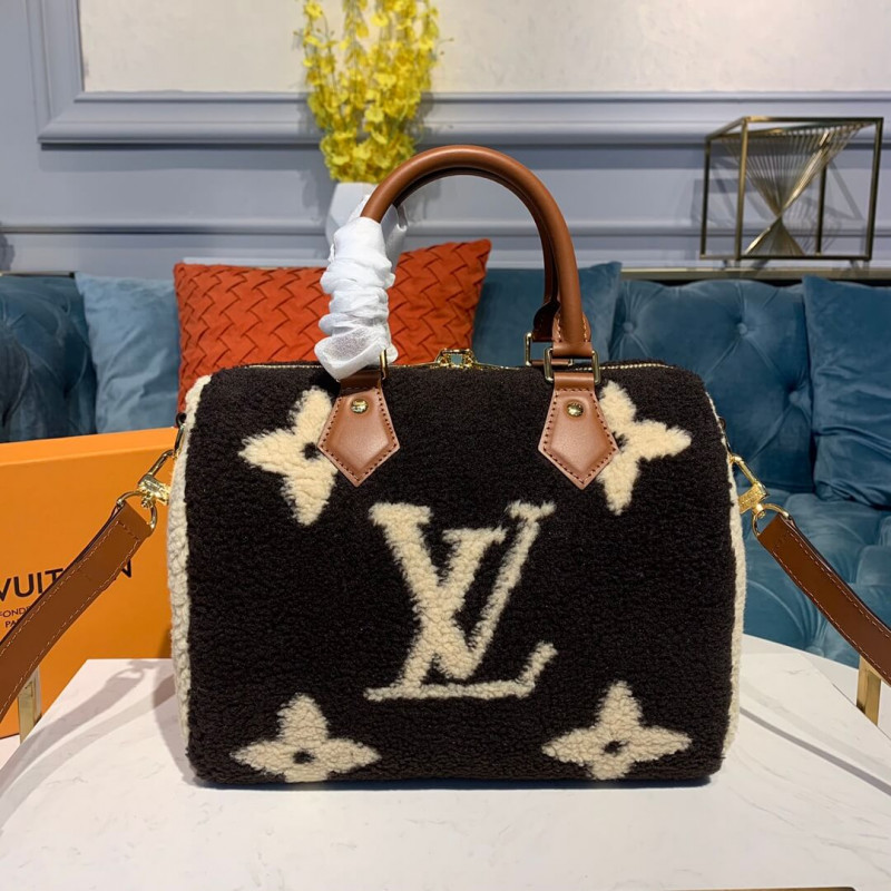 A Louis Vuitton ikonikus gyors Bandouliere 25 kézitáskája elegáns új csavarral rendelkezik a Monogram LV Teddy Limited Edition számára. A ház bőráru-kézműves munkájának bemutatása során egy kifinomult intarsia technikát alkalmaznak egy óriási monogrammintázat létrehozására a fényűző nyírásokban. Az eredmény ellenállhatatlanul bolyhos megjelenés és szuper-puha érzés.]] aranyszínű hardver