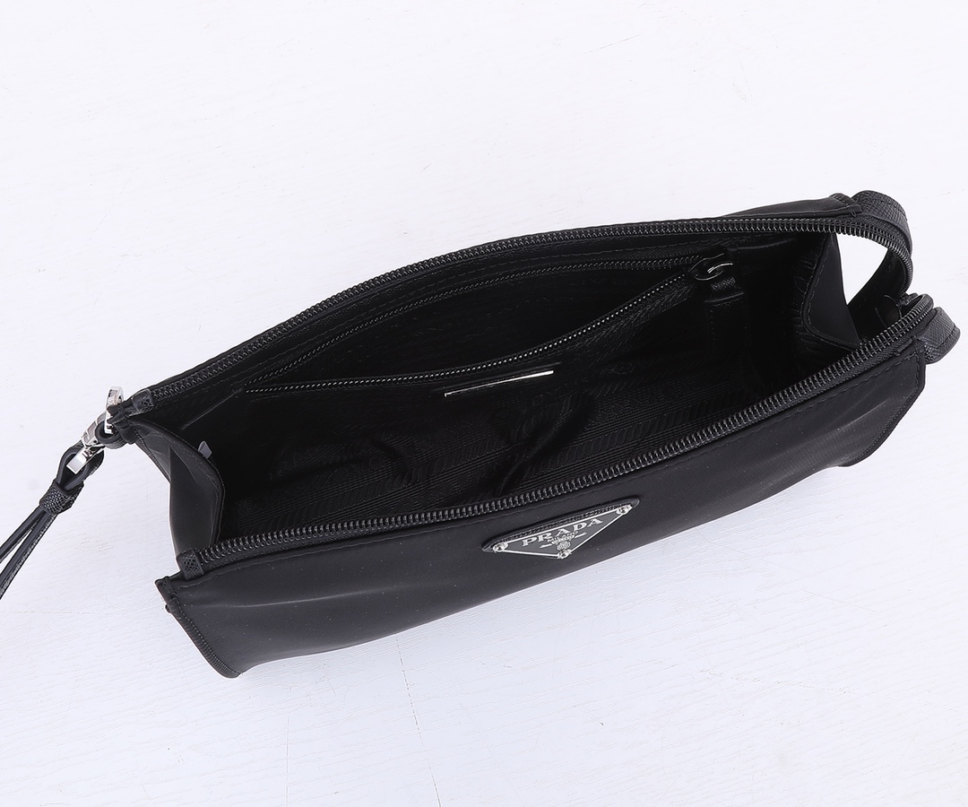 Két rekeszes bőrcsukló -strapenameled fémháromszög logó a Frontzipper Closureinterior -n