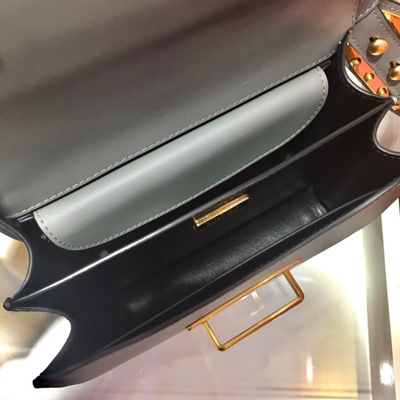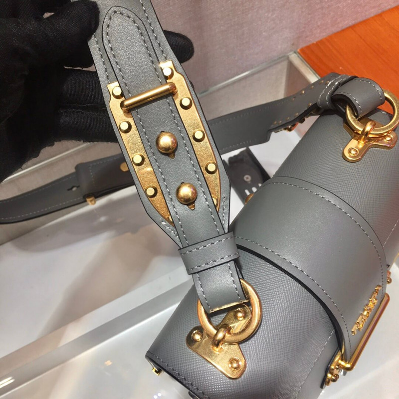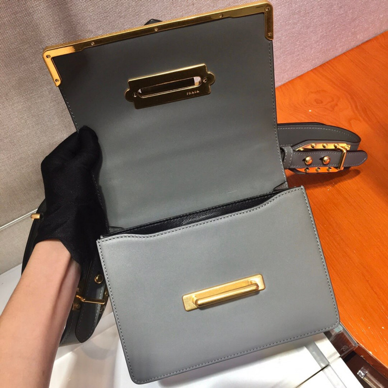 Az értékes ősi könyvek ihlette, a Prada Cahier táska, itt egy kéttónusú változatban, puha borjúbőrből készül. A fém hardver félreérthetetlen megjelenést ad, és eltávolítható vállszíjával érkezik.