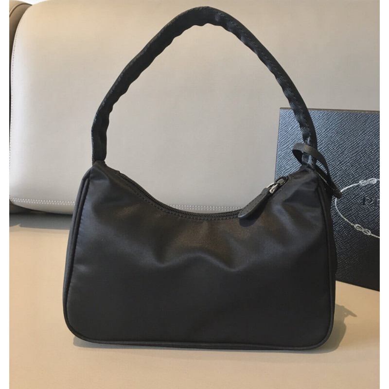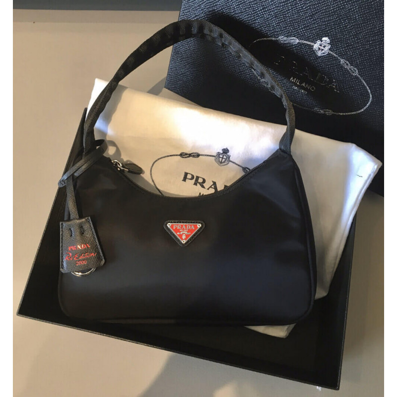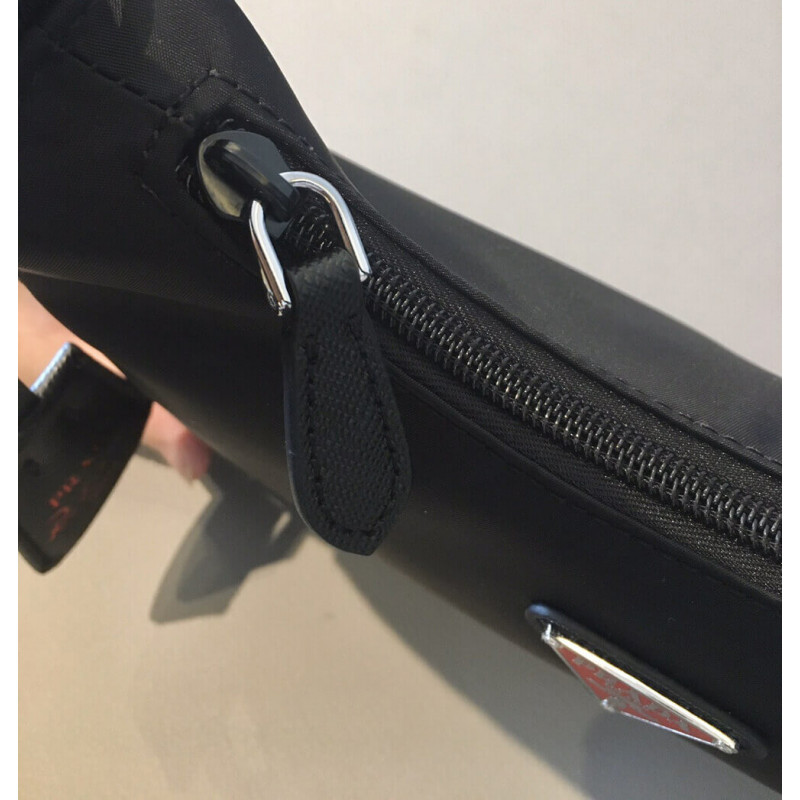 Gyakorlati és nőies, a nejlon mini táskát ikonikus Saffiano bőr díszítéssel díszítik. Kortárs anyagok keverékével rendelkezik.