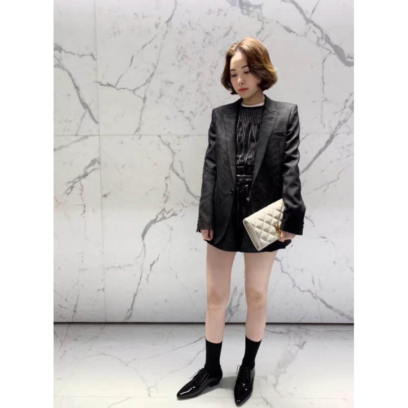 pénztárca egy szárnyas, YSL kezdőbetűvel díszítve és bőrrel erősített kettős lánccal. résidők