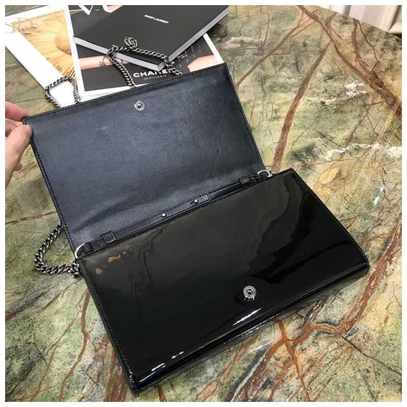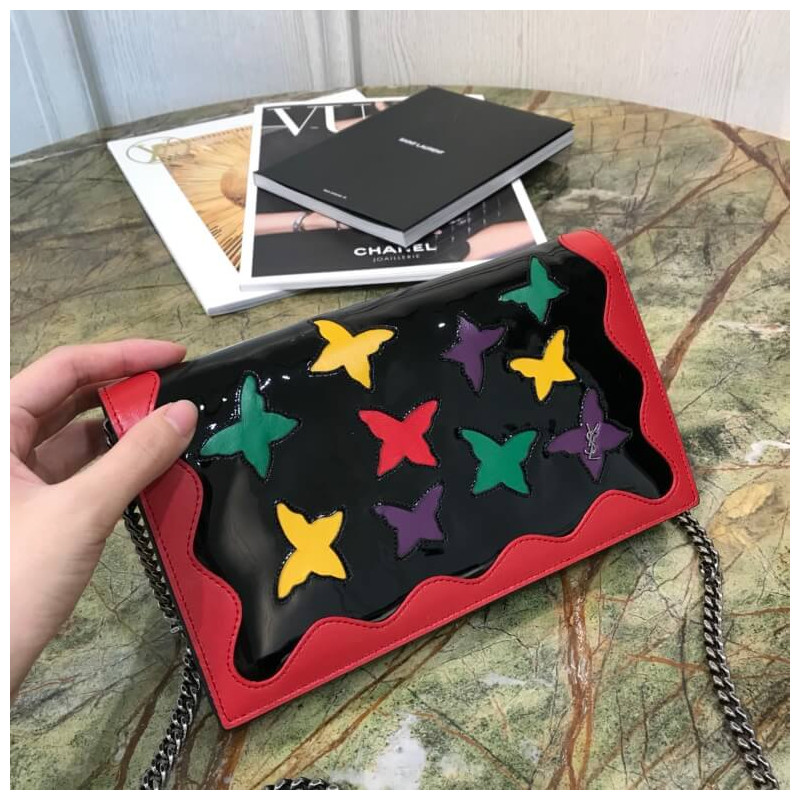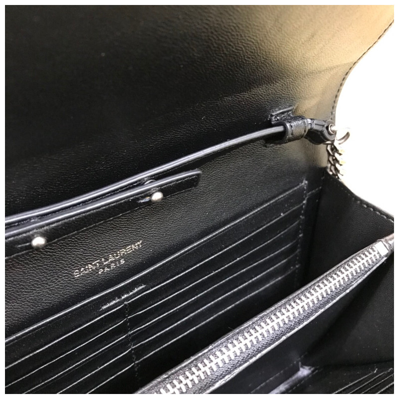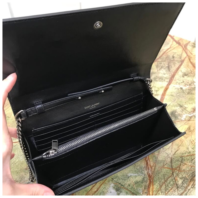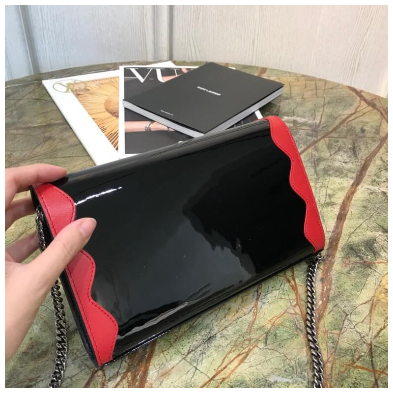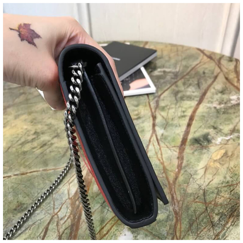 Fekete pénztárca a Saint Laurent láncán.