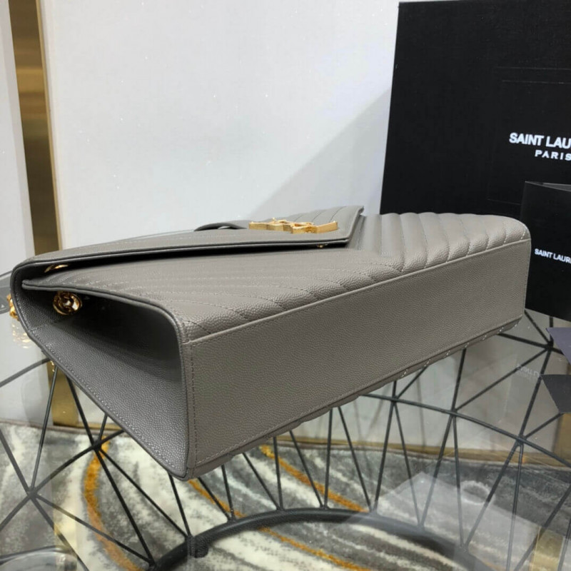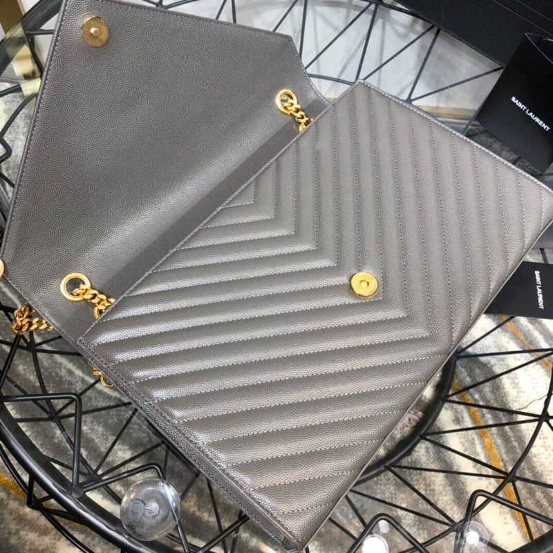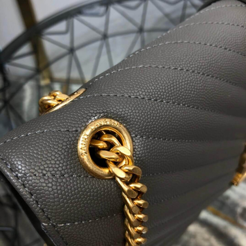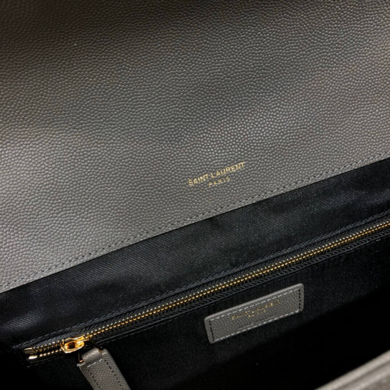 Klasszikus Monogram Saint Laurent Double Gourmette láncflap első táska arany tónusú fém YSL aláírással és Matelasse-varrással.