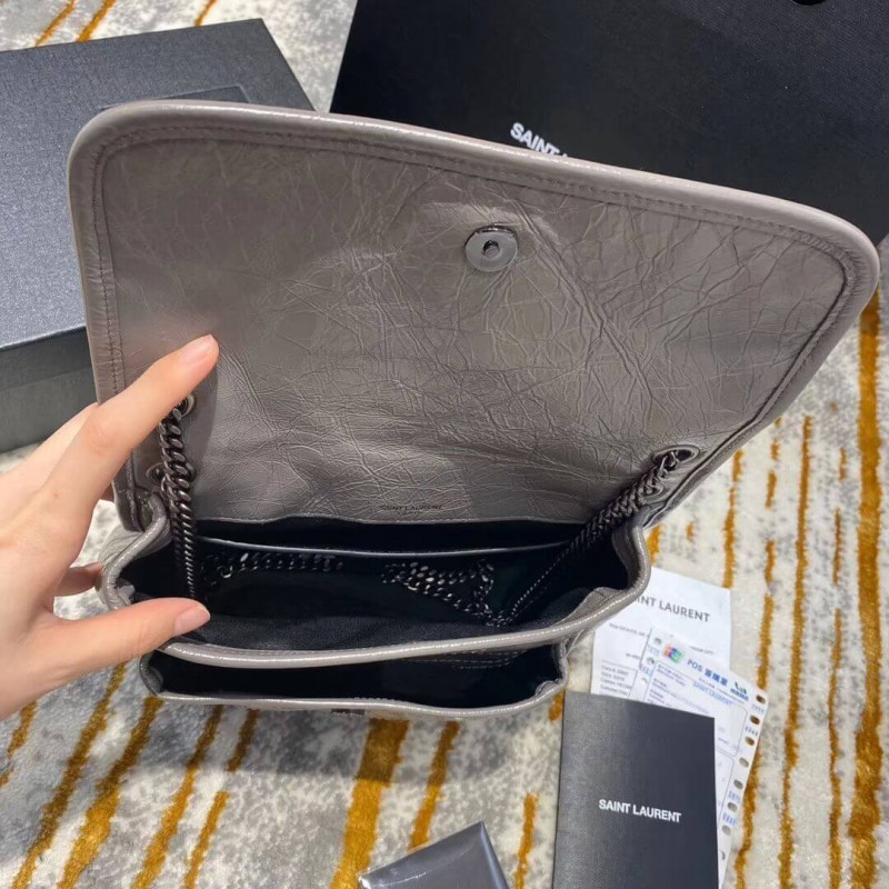 Saint Laurent monogram táska elülső szárnyas, bőrrel ártott YSL monogram, lánc és bőr kabrió vállszíj, központi rekesz és nyitott hátsó zseb.]] Grosgrain bélés