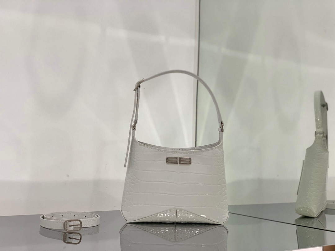 Balenciaga 695589 Női XX Small Hobo táska krokodil dombornyomott fehér